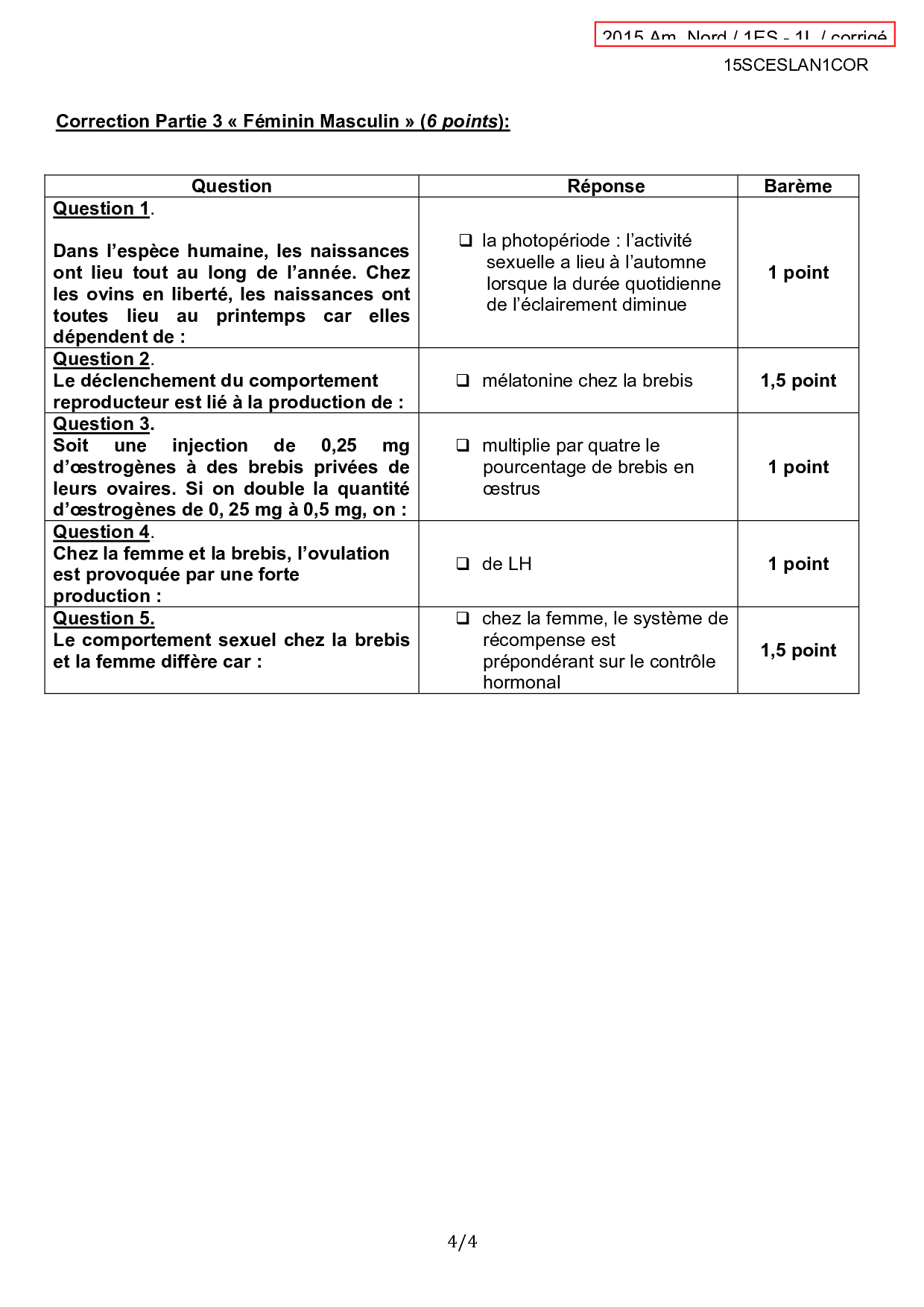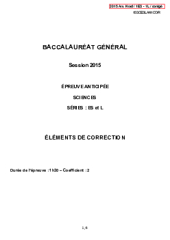 Bac ES-L Sciences (1ère) Amérique du Nord 2015 - Corrigé