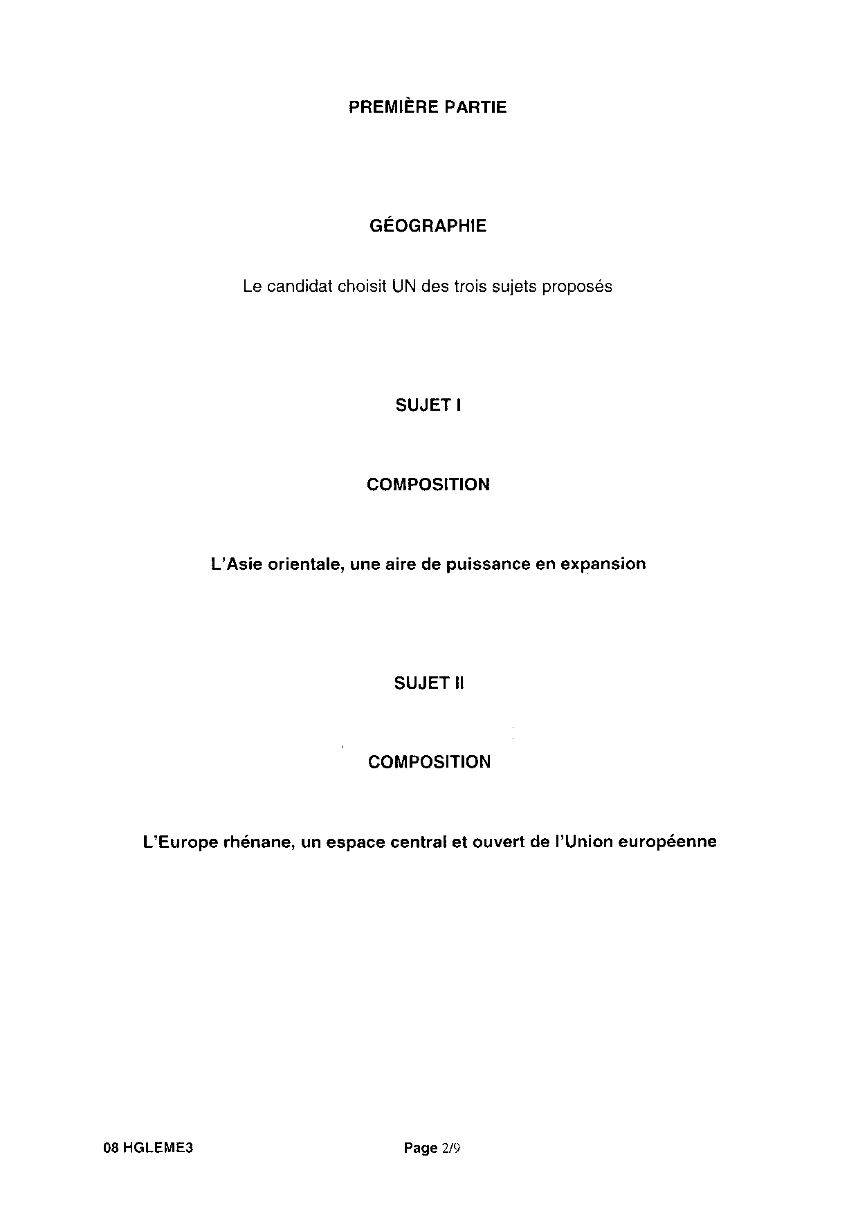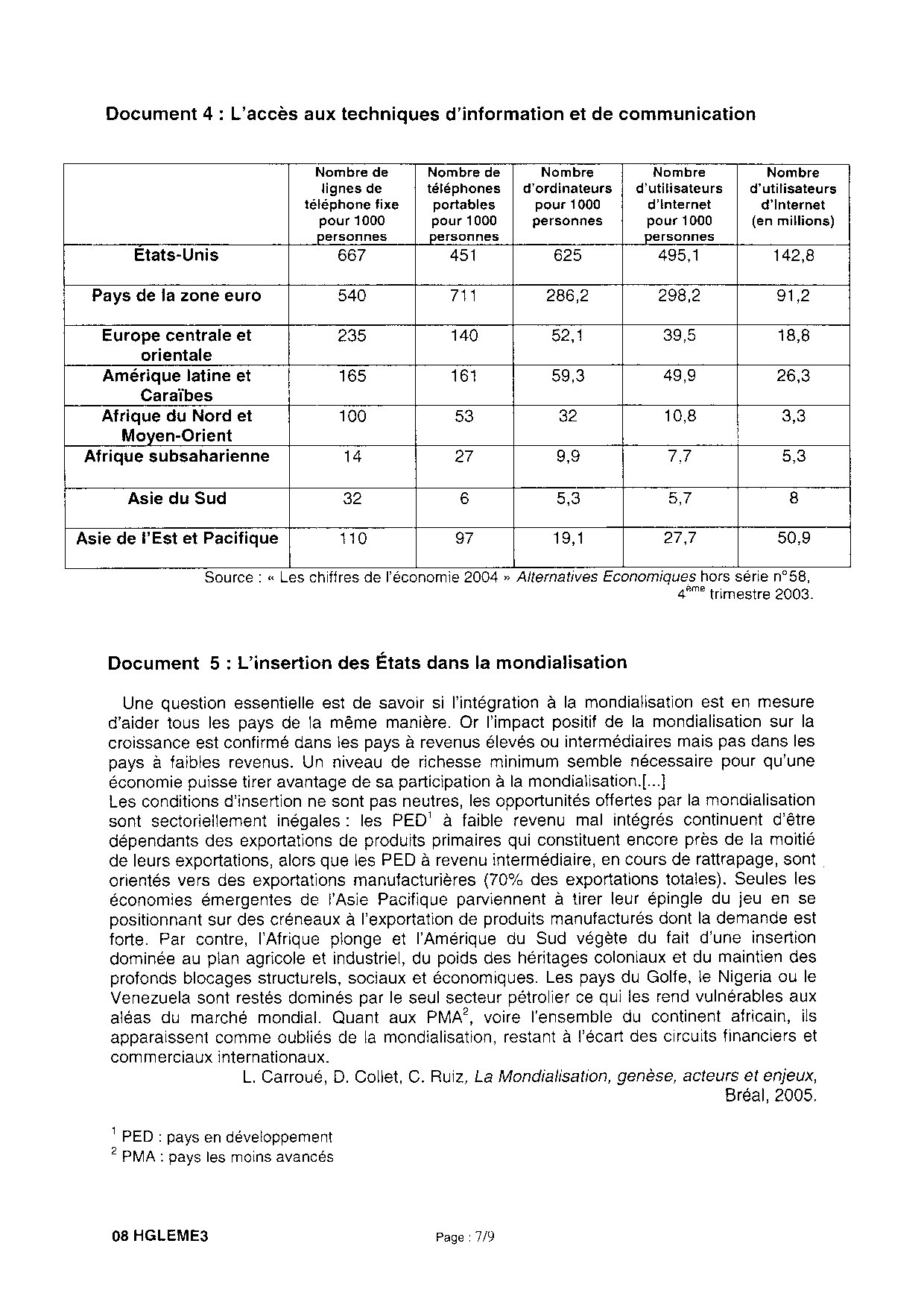 Bac ES-L Histoire Géographie Métropole 2008 (Session de remplacement) - Sujet