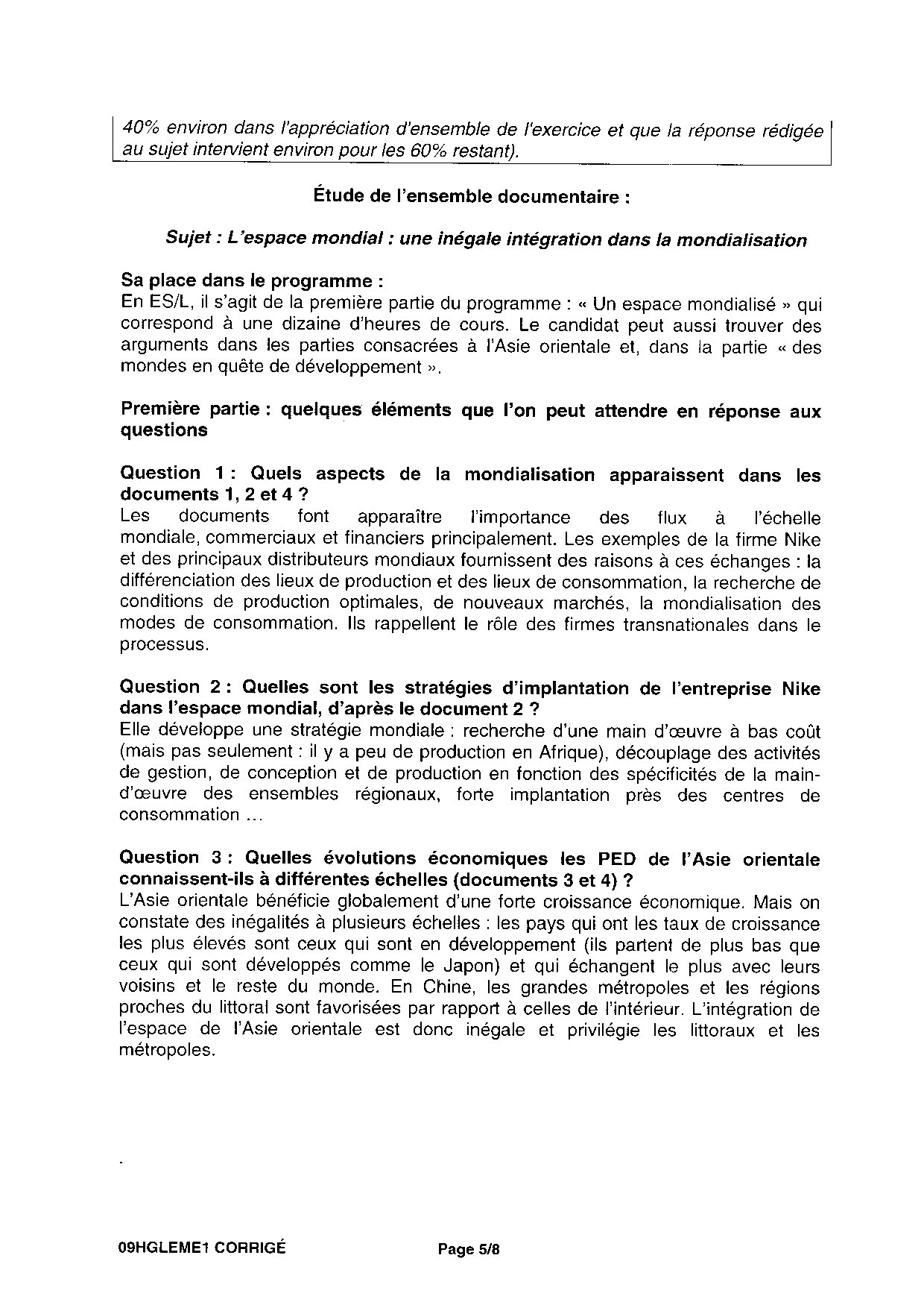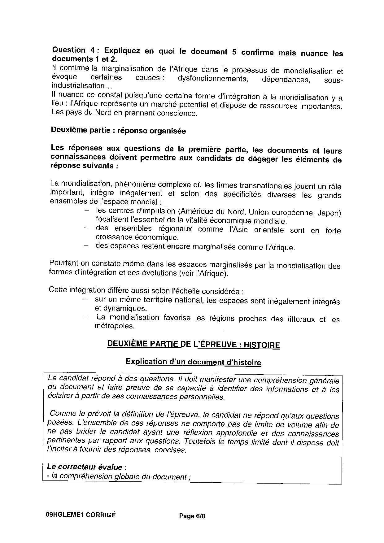 Bac ES-L Histoire Géographie Métropole 2009 - Corrigé