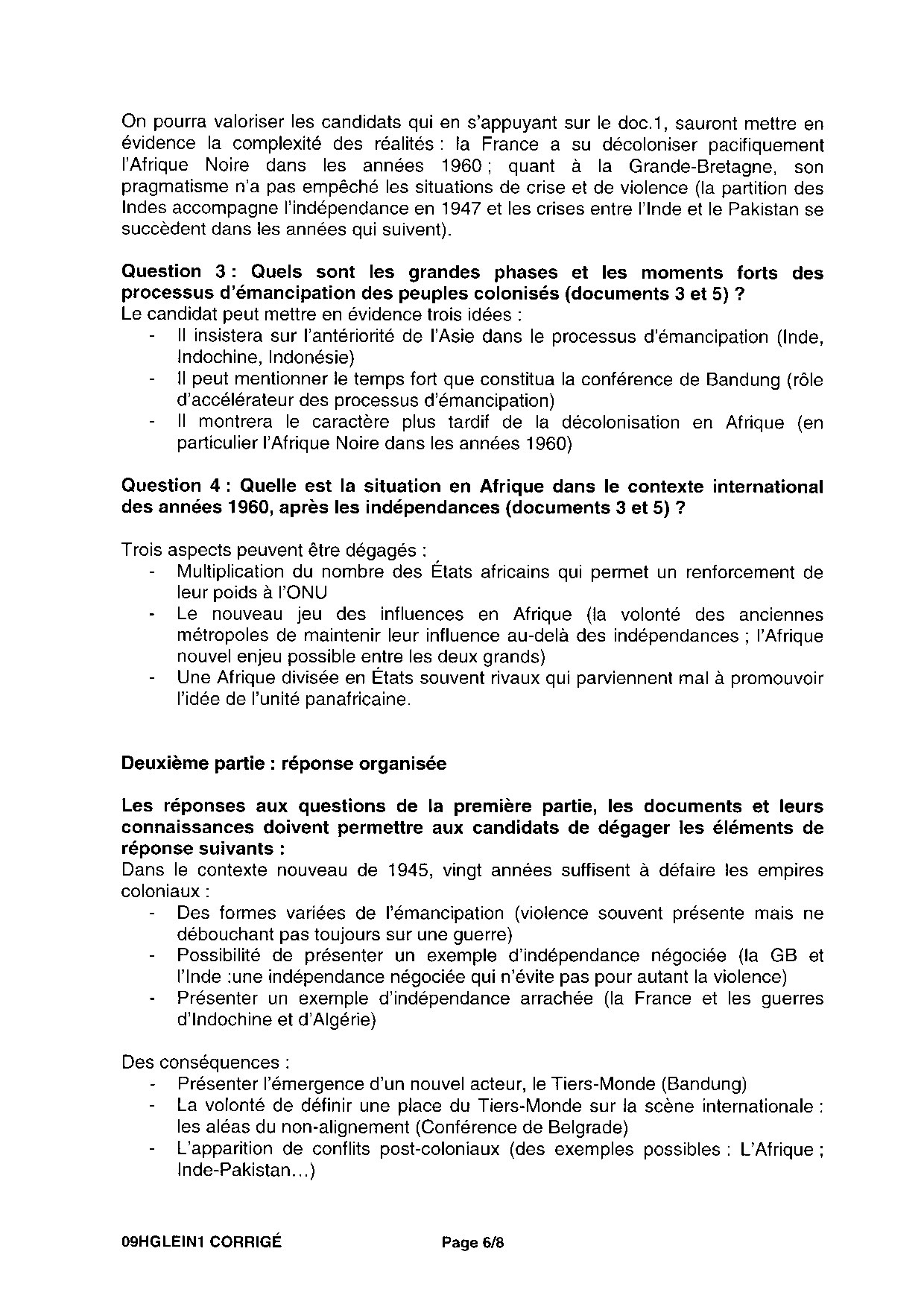 Bac ES-L Histoire Géographie Pondichéry 2009 - Corrigé