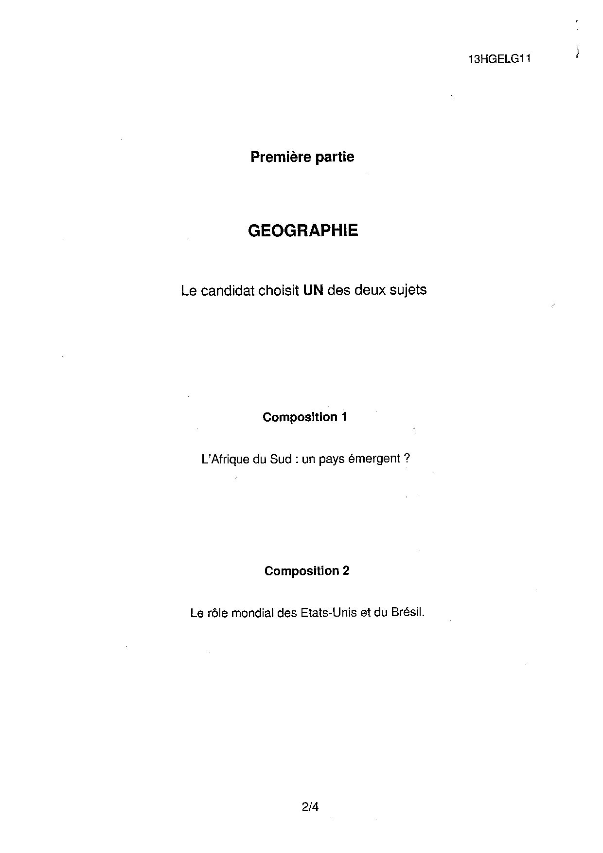 Bac ES-L Histoire Géographie Centres Etrangers Afrique 2013 - Sujet