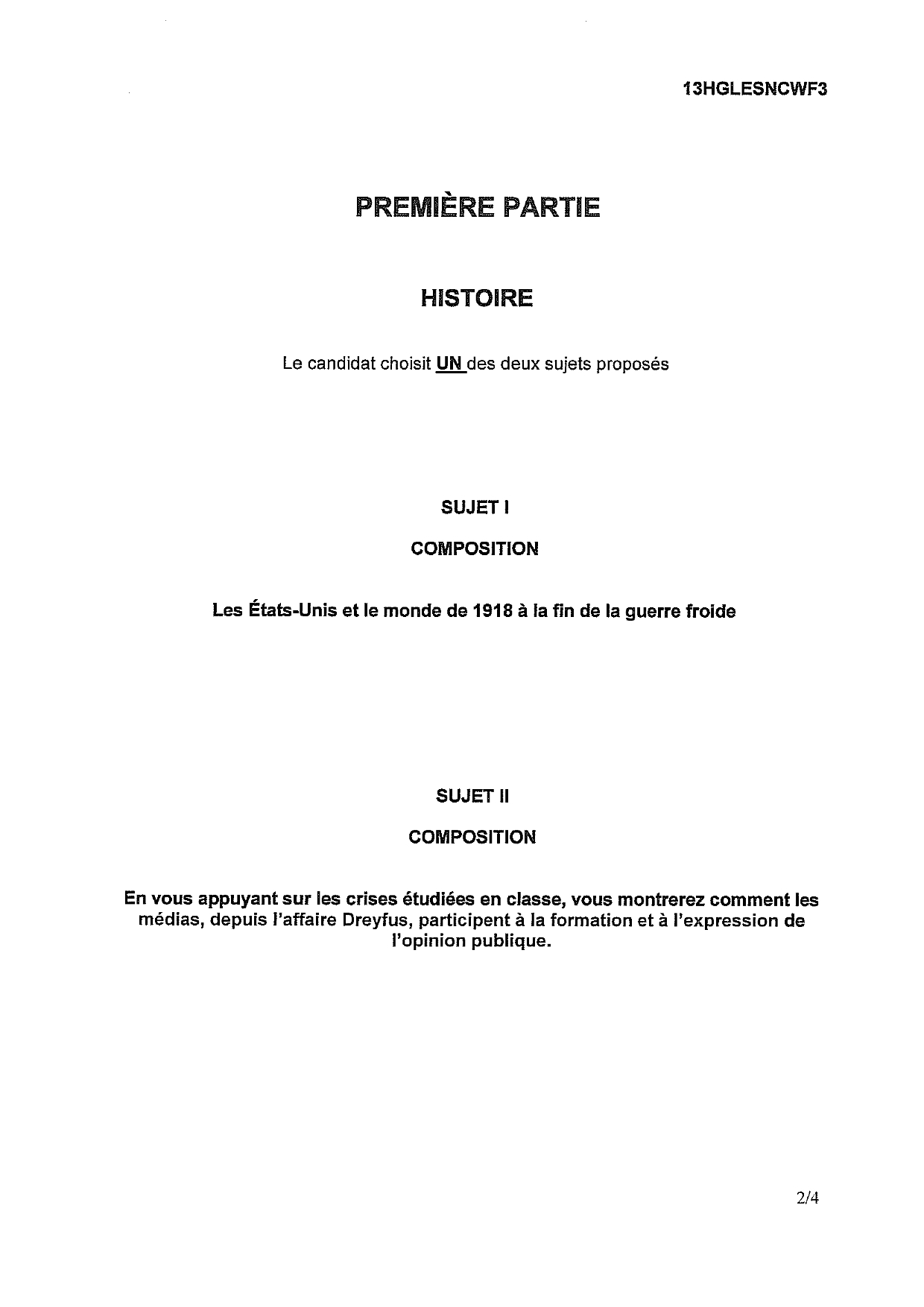 Bac ES-L Histoire Géographie Nouvelle-Calédonie 2013 (Session de remplacement) - Sujet