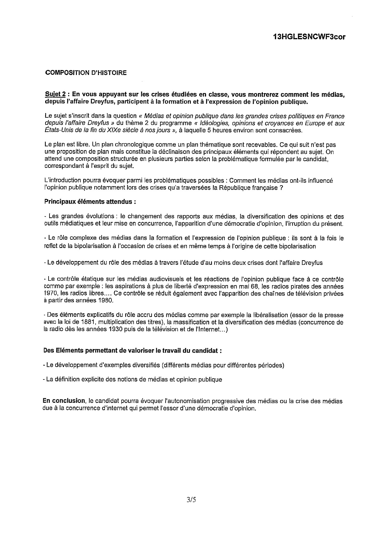 Bac ES-L Histoire Géographie Nouvelle-Calédonie 2013 (Session de remplacement) - Corrigé