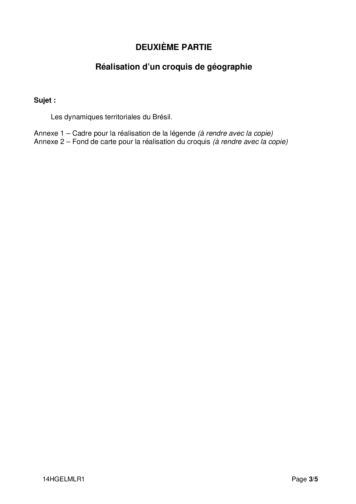 Bac ES-L Histoire Géographie Métropole 2014 - Sujet