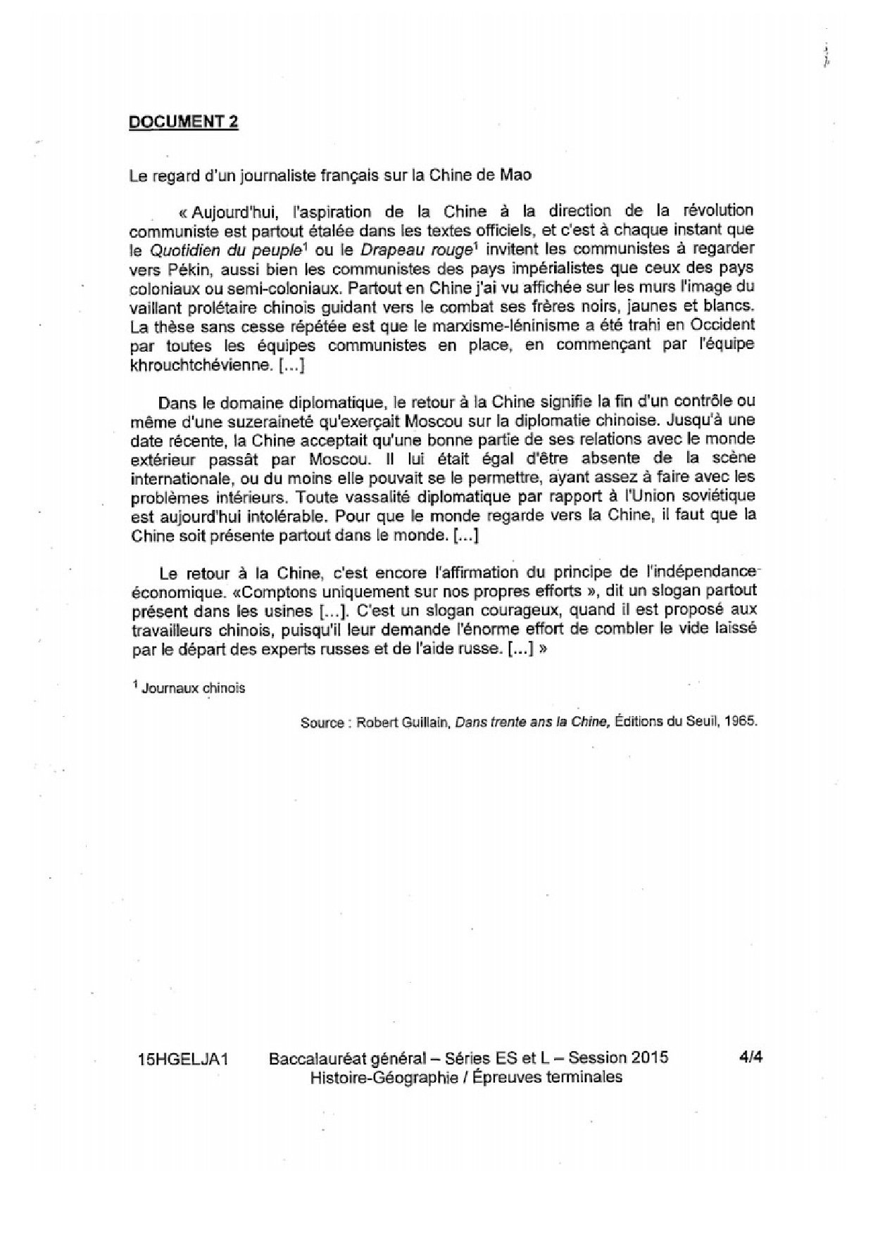 Bac ES-L Histoire Géographie Asie 2015 - Sujet