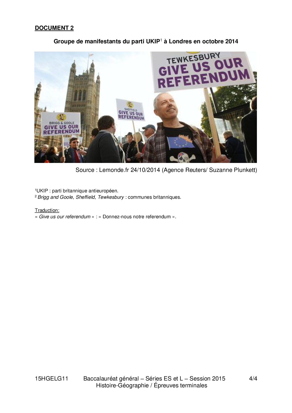 Bac ES-L Histoire Géographie Centres Etrangers Afrique 2015 - Sujet