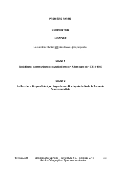 Bac ES-L Histoire Géographie Centres Etrangers Afrique 2016 - Sujet