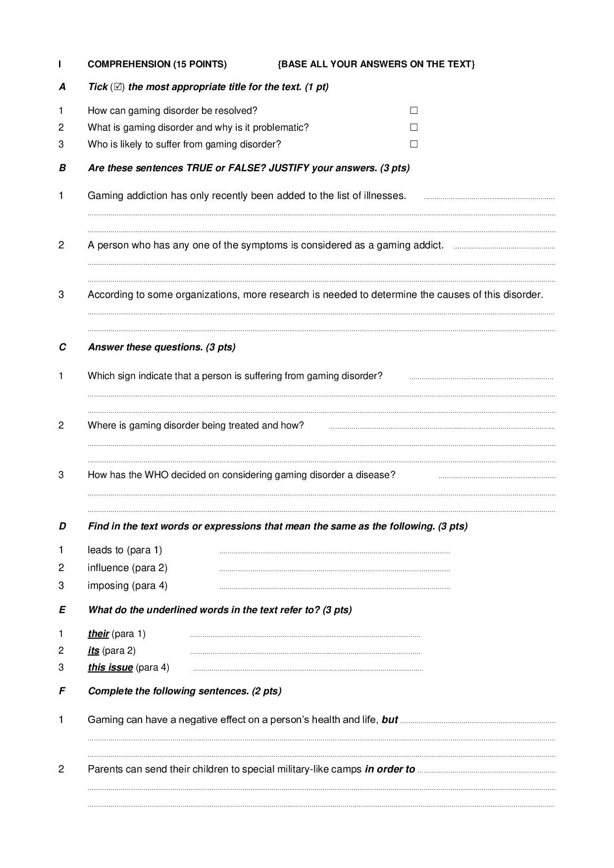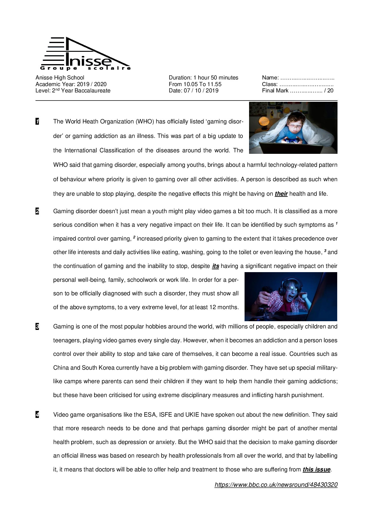 Test 1 Model 1 - English 2 Bac First term