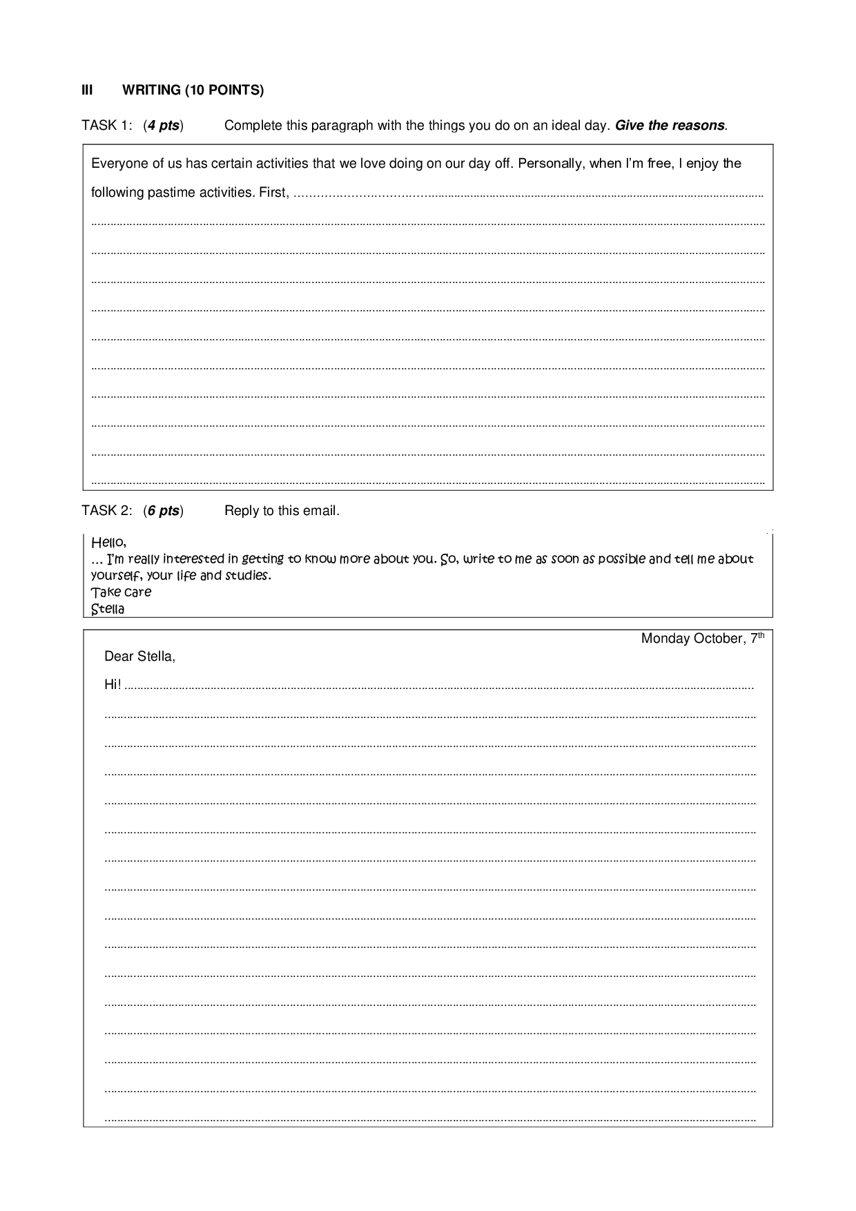 First term english tests
