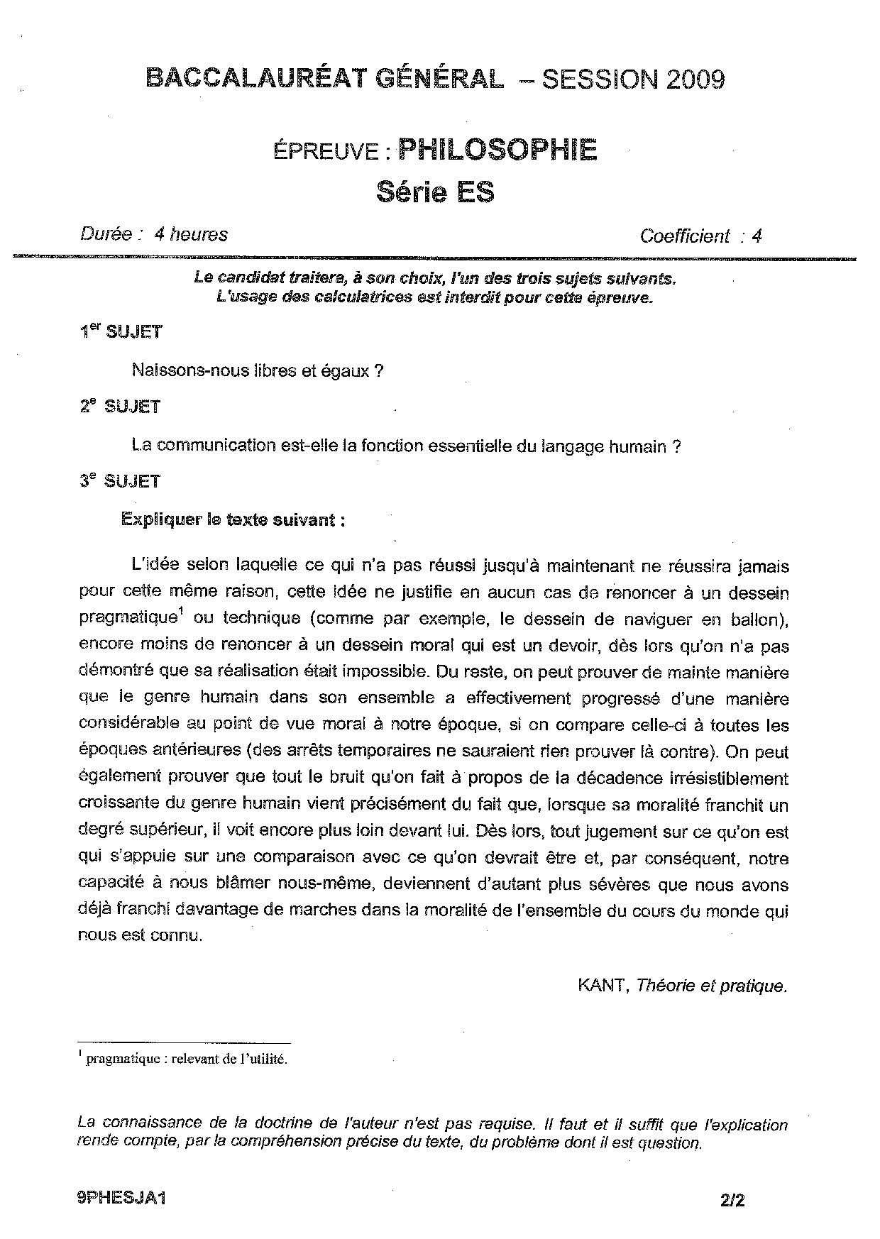 Philosophie: Annales Bac ES