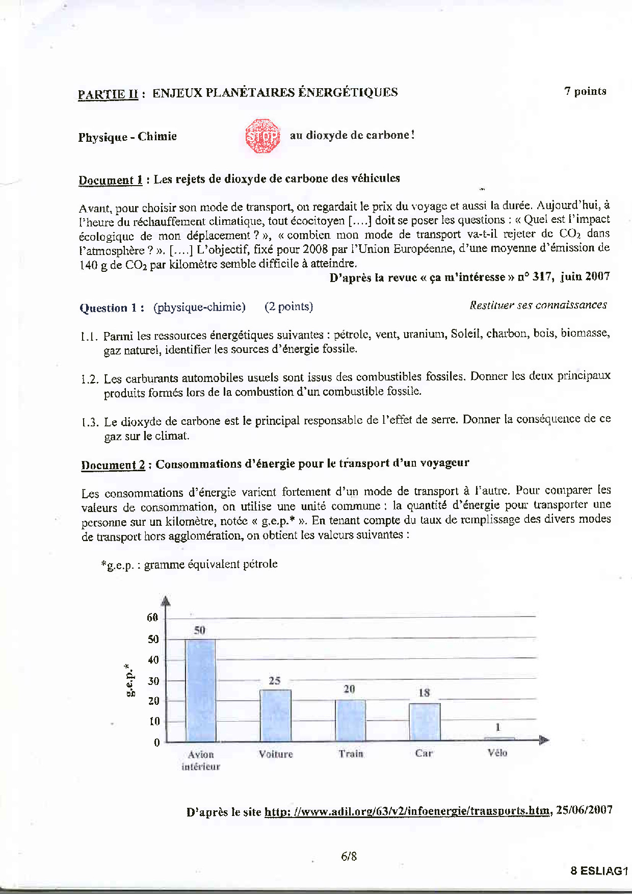 Bac L Sciences (1ère) Antilles-Guyane 2008 - Sujet