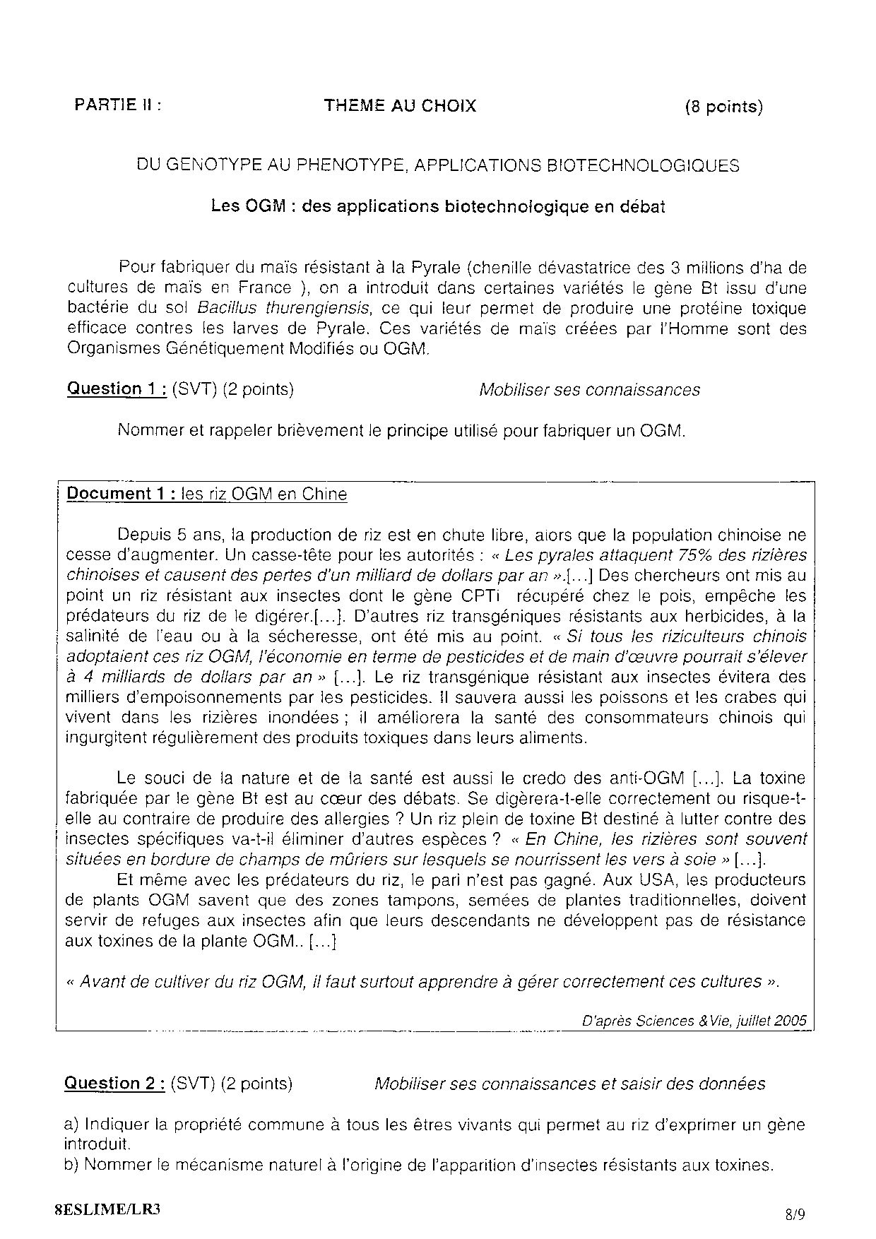 Bac L Sciences (1ère) Métropole 2008 (Session de remplacement) - Sujet