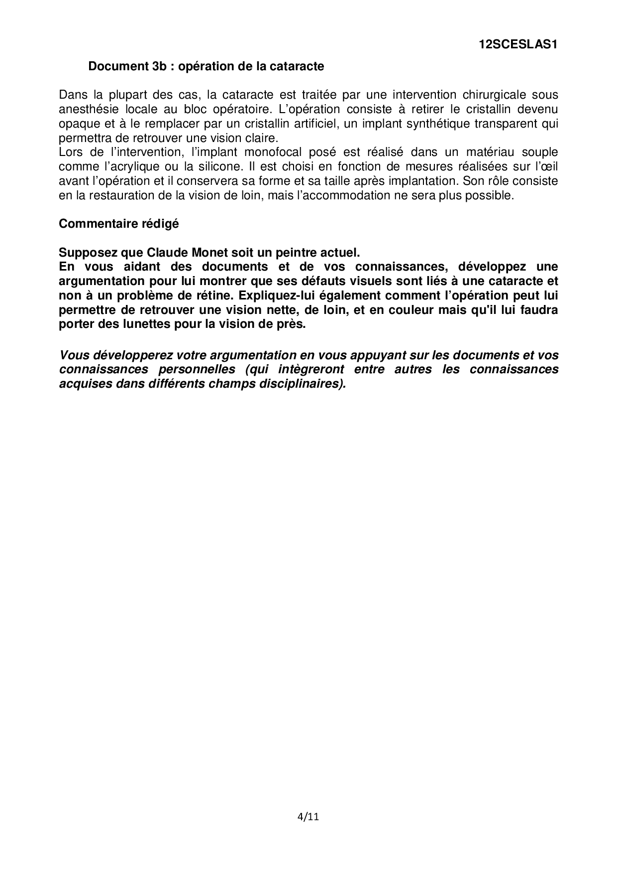Sciences (1ère): Annales Bac L