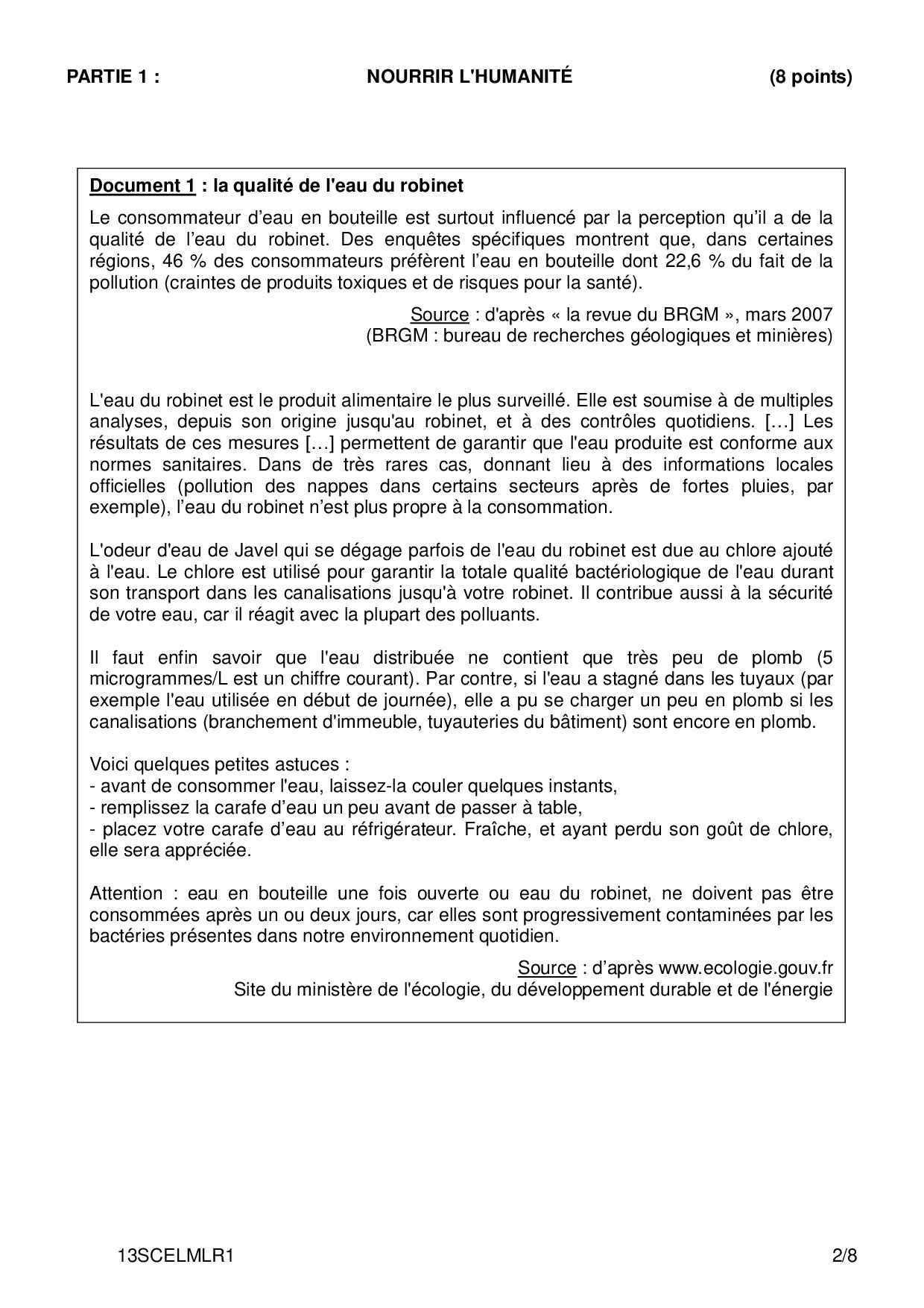 Bac ES-L Sciences (1ère) Métropole 2013 - Sujet