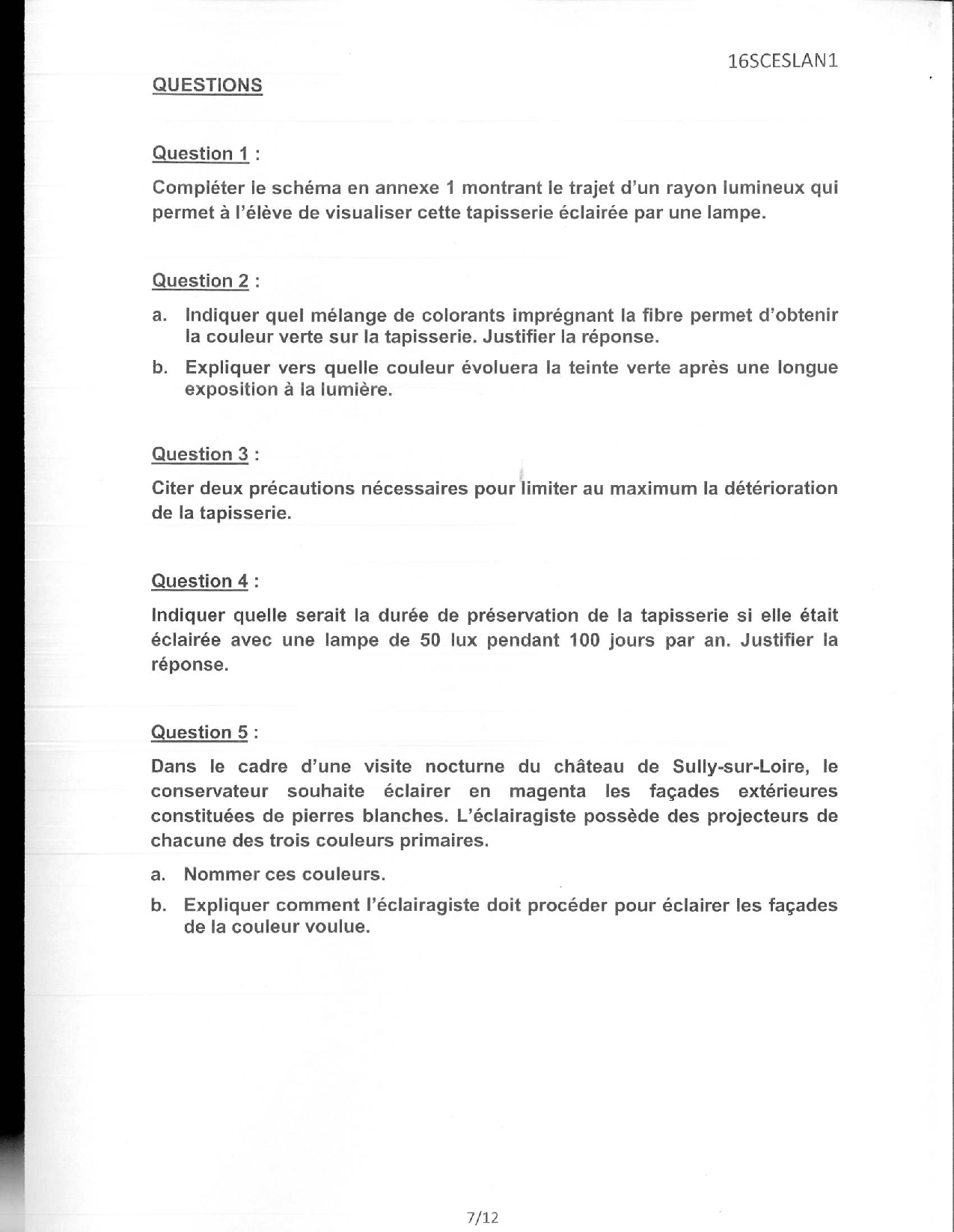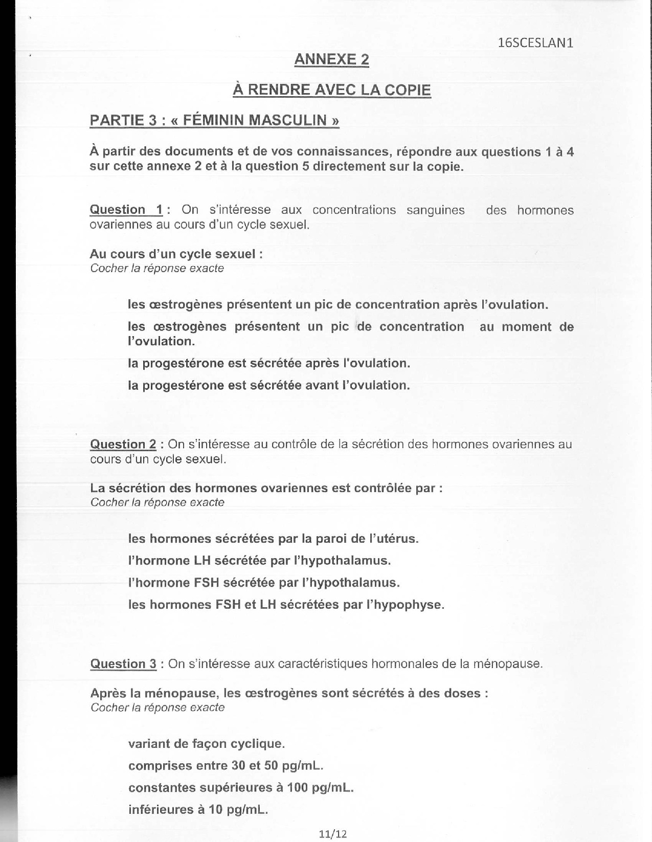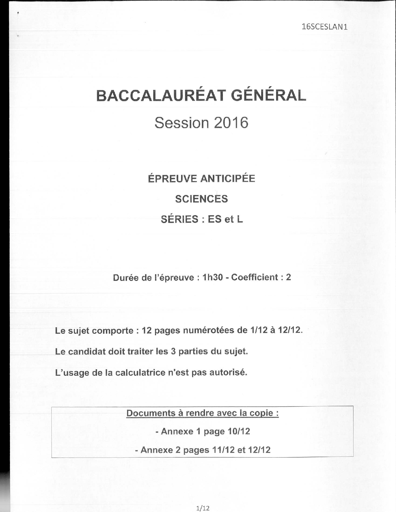 Sciences (1ère): Annales Bac L