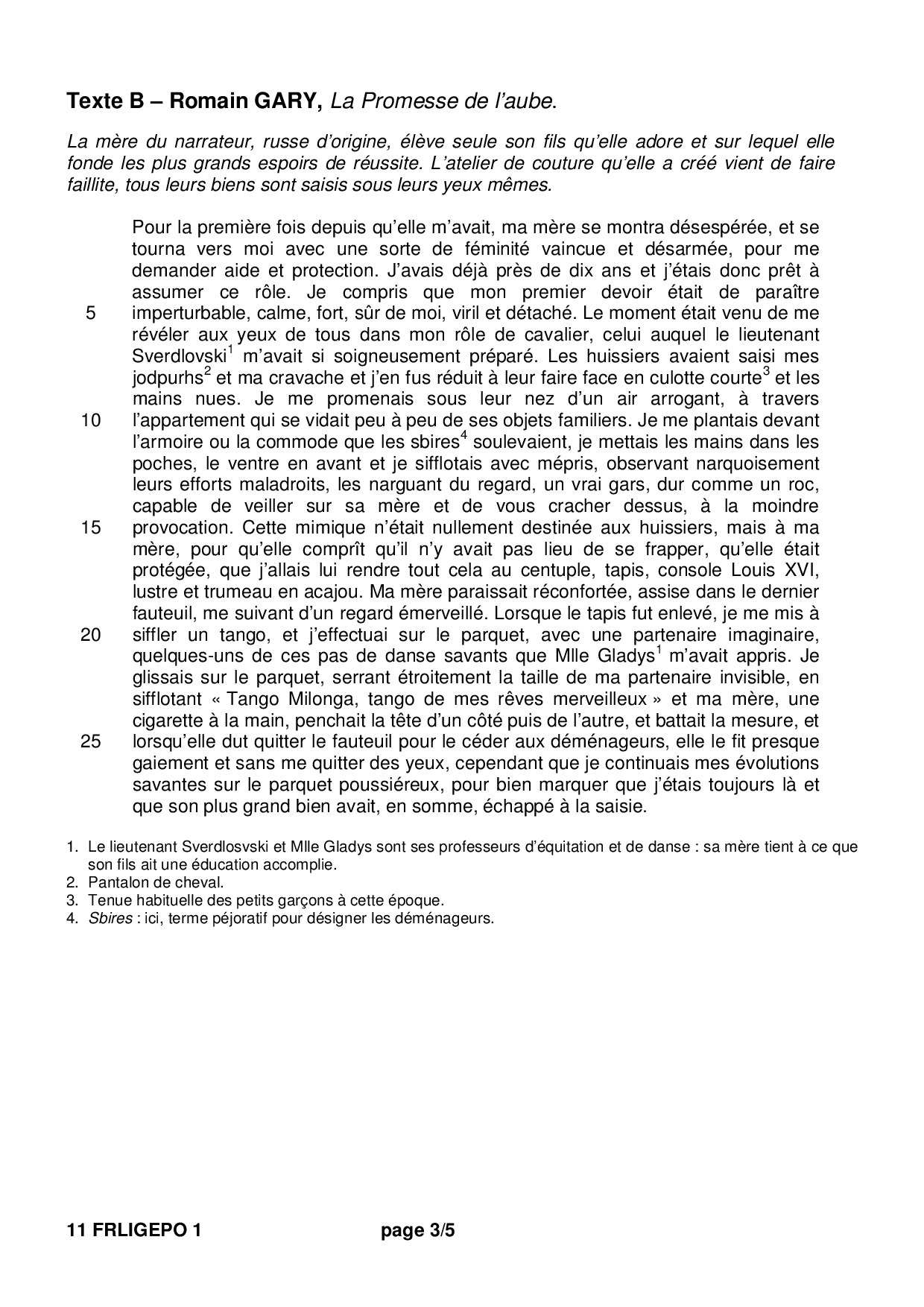 Bac L Français (1ère) Polynésie 2011 - Sujet