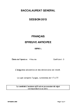 Bac L Français (1ère) Métropole 2013 - Sujet