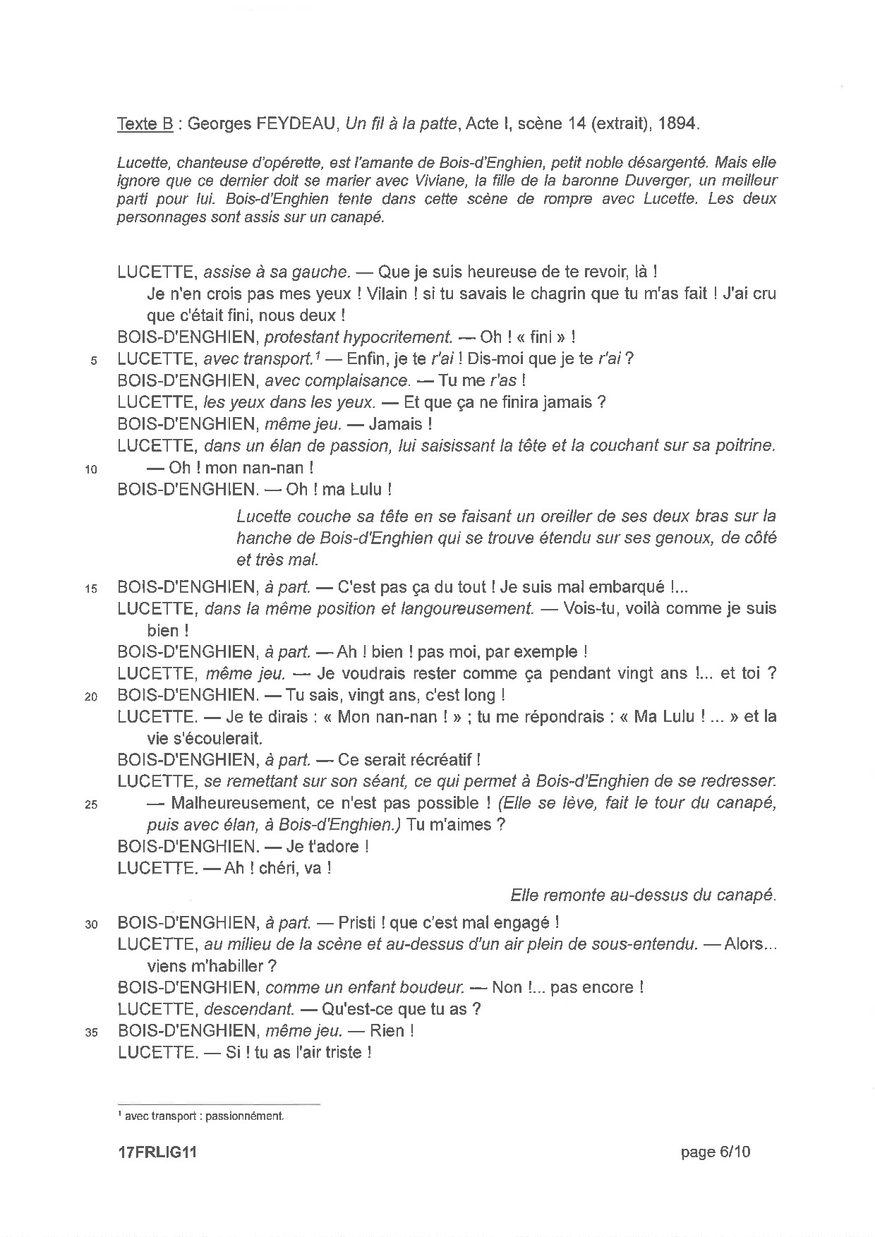 Français (1ère): Annales Bac L