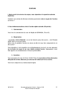 Français (1ère): Annales Bac L