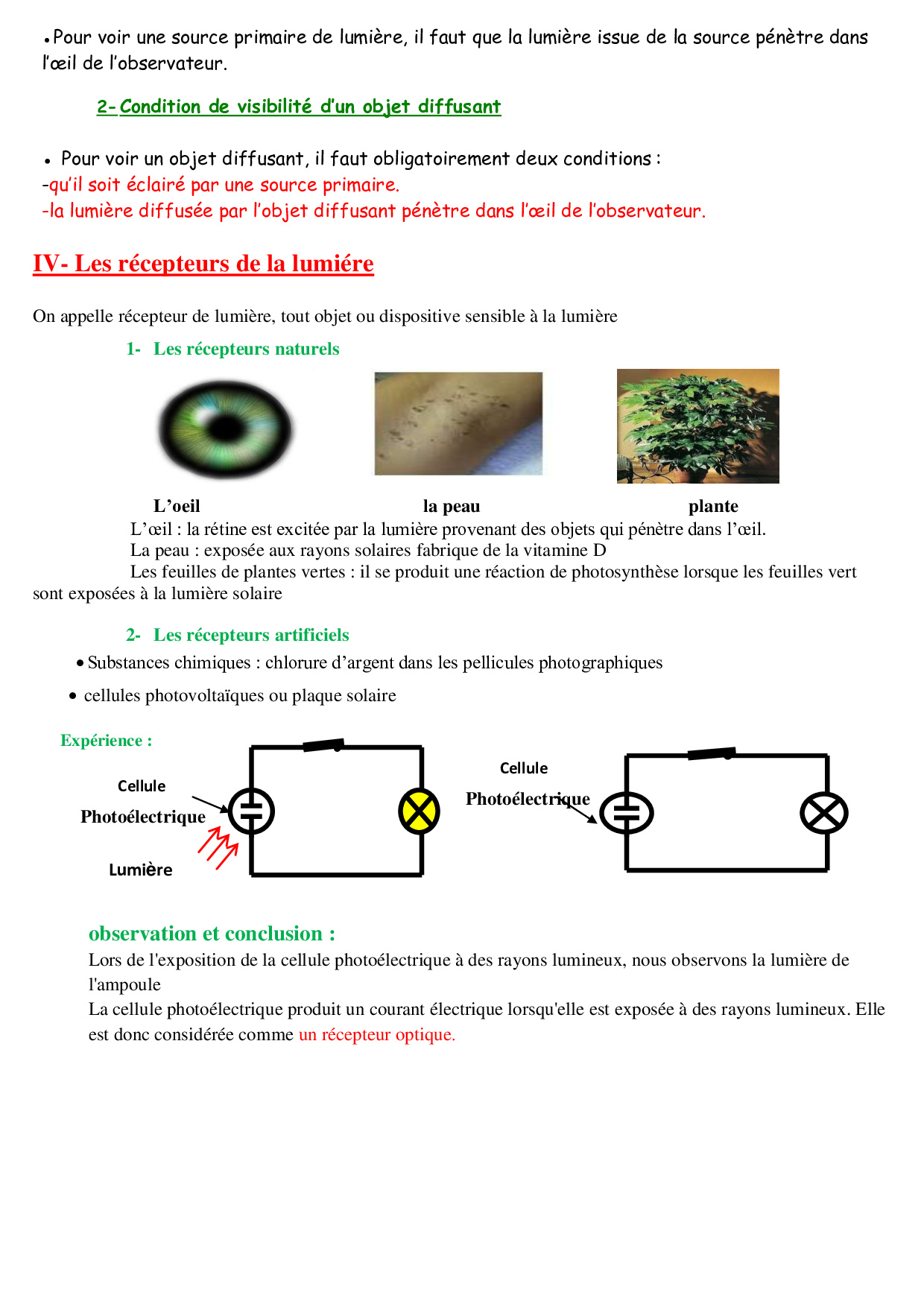 Les sources et les récepteurs de la lumière - Cours 3