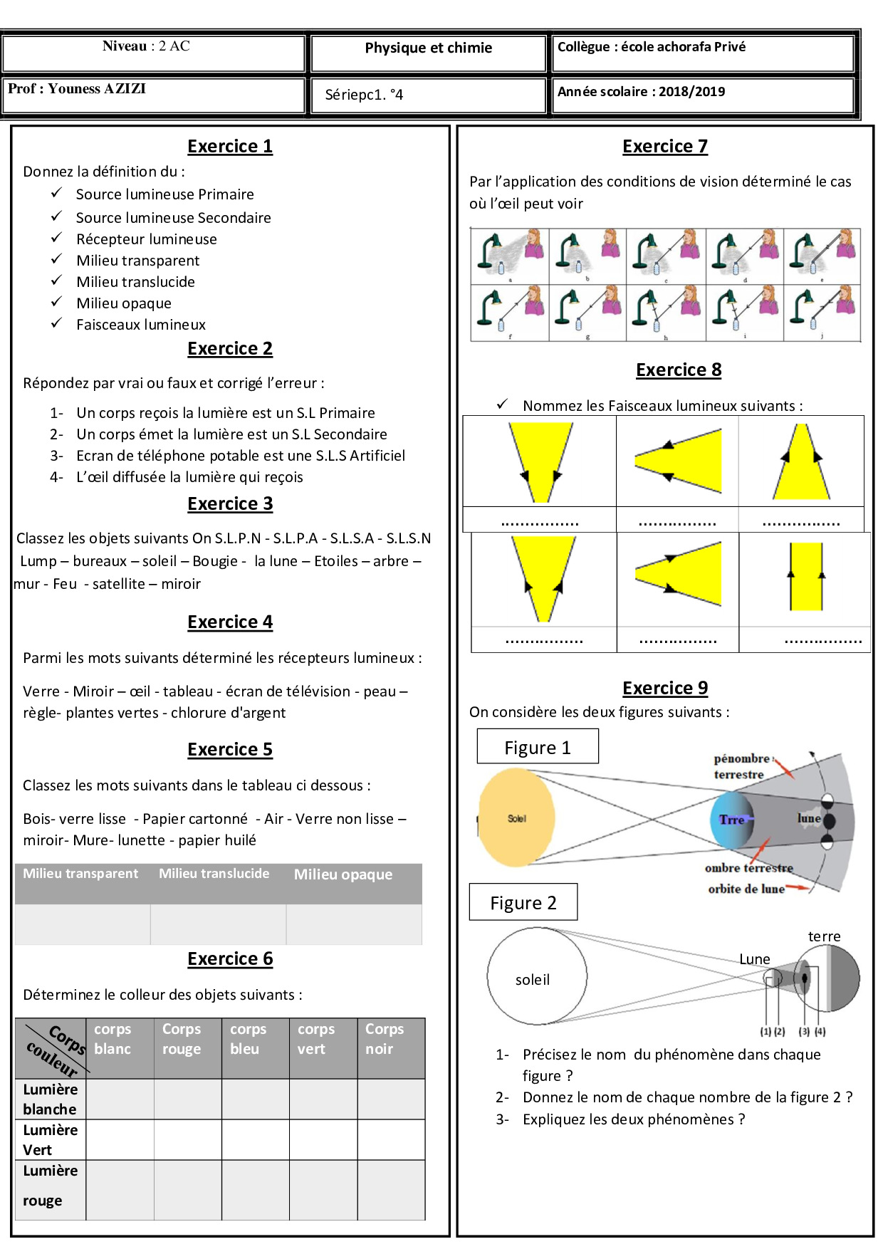 Lumière et couleurs - Dispersion de la lumière - Exercices non corrigés 3