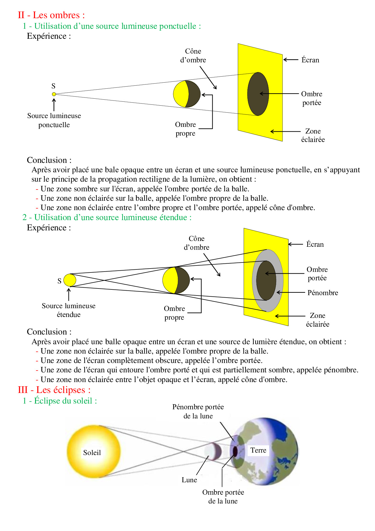 Applications de la propagation rectiligne de la lumière - Cours 1