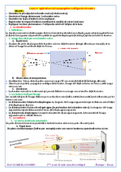 Applications de la propagation rectiligne de la lumière - Cours 2