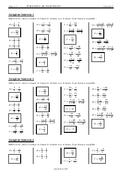 Produits et quotients de fractions - Corrigé série d'exercices 3