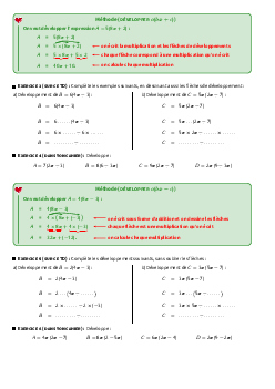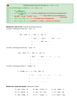 Calcul littéral - Résumé de cours et Travaux dirigés