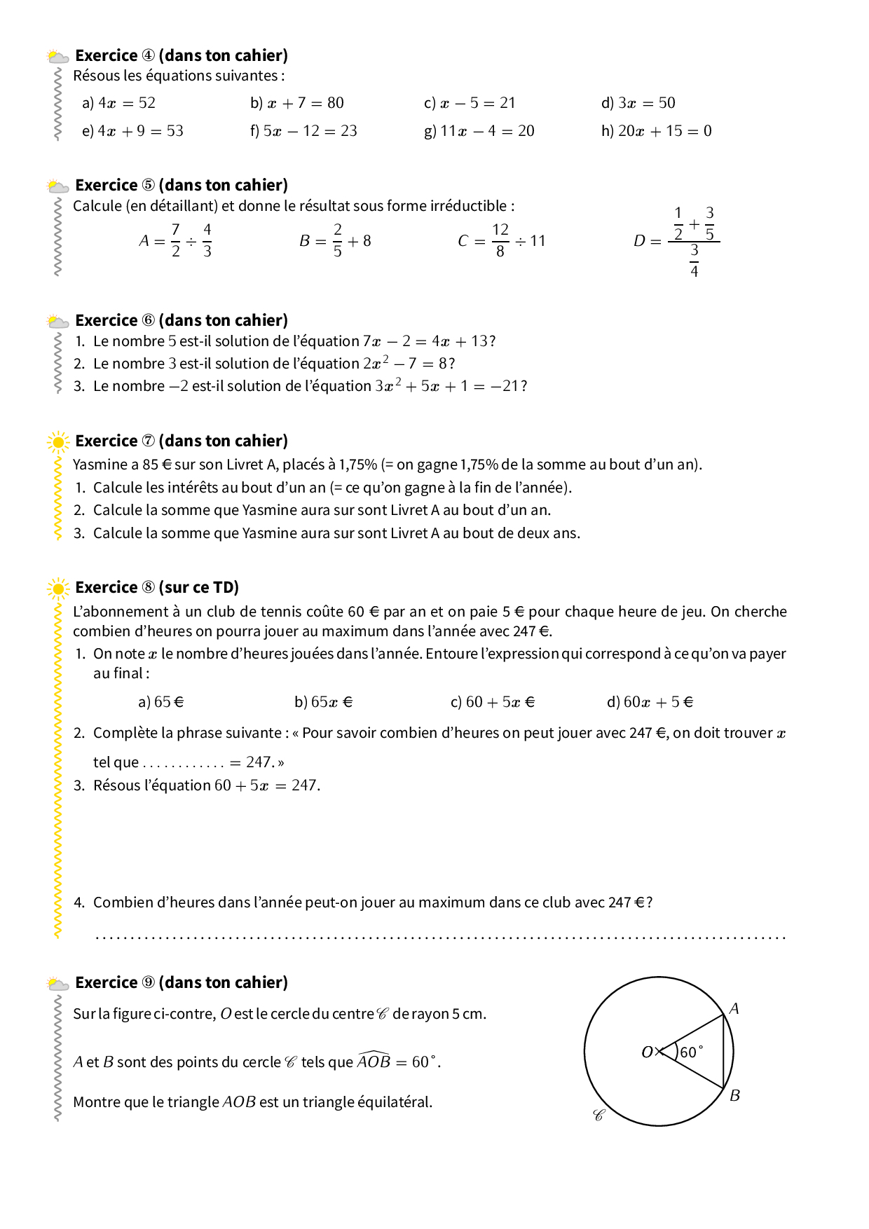 Équations - Cours et exercices (FR)