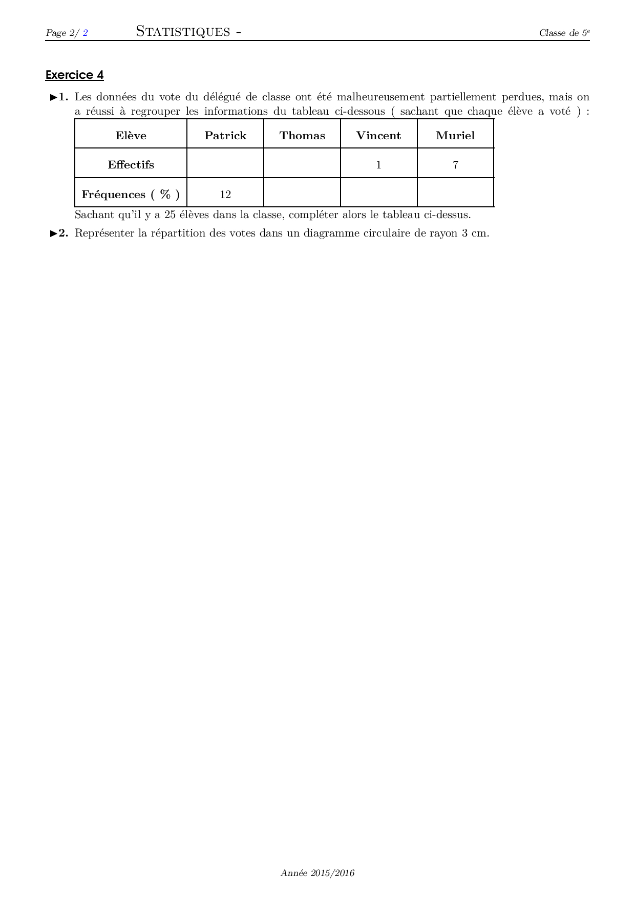 Représentation de données - Série d'exercices 4