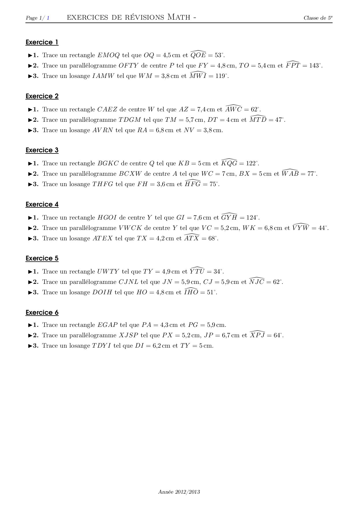Construction de parallélogrammes - Série d'exercices 1