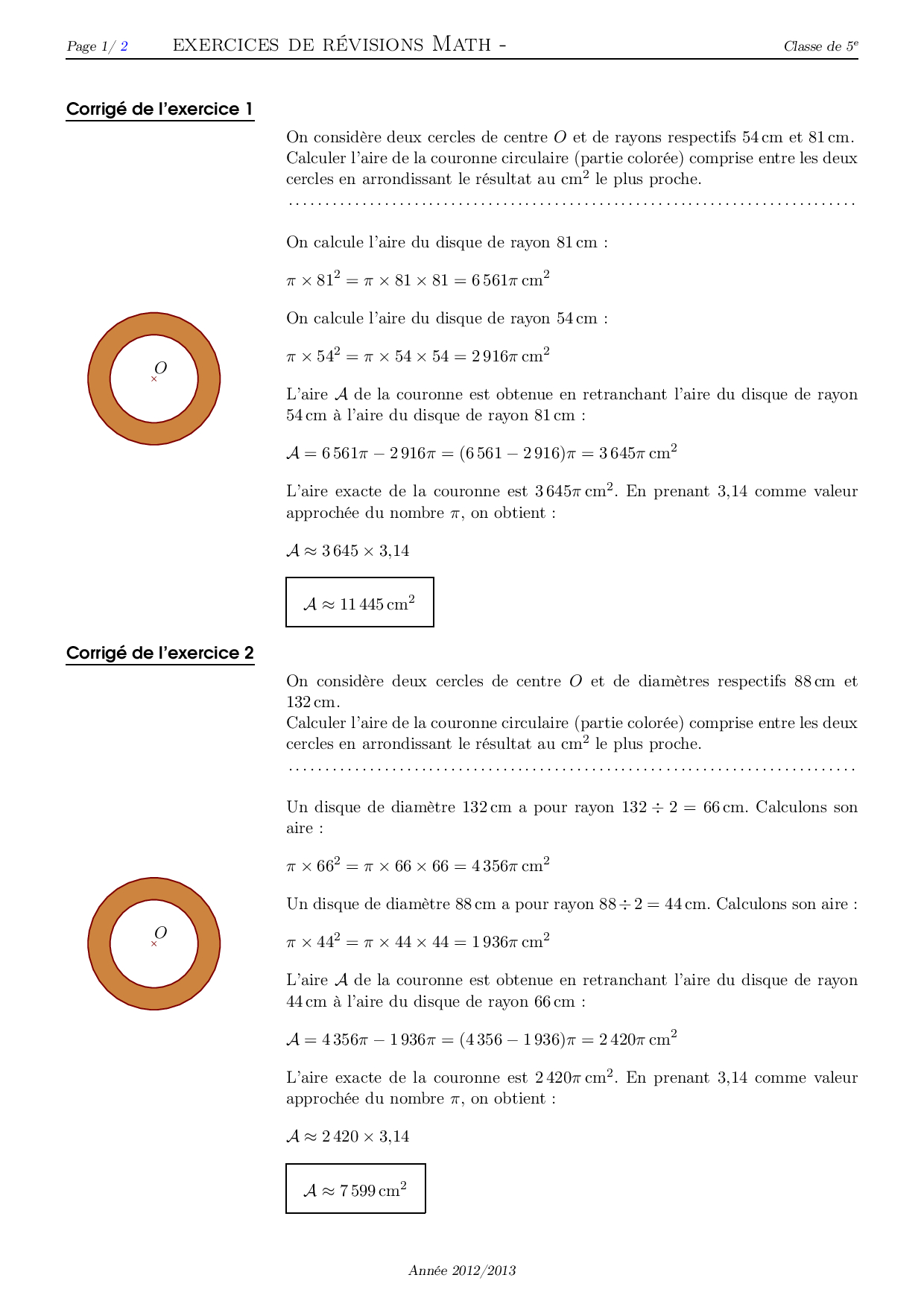 Aires de disques - Corrigé série d'exercices 2
