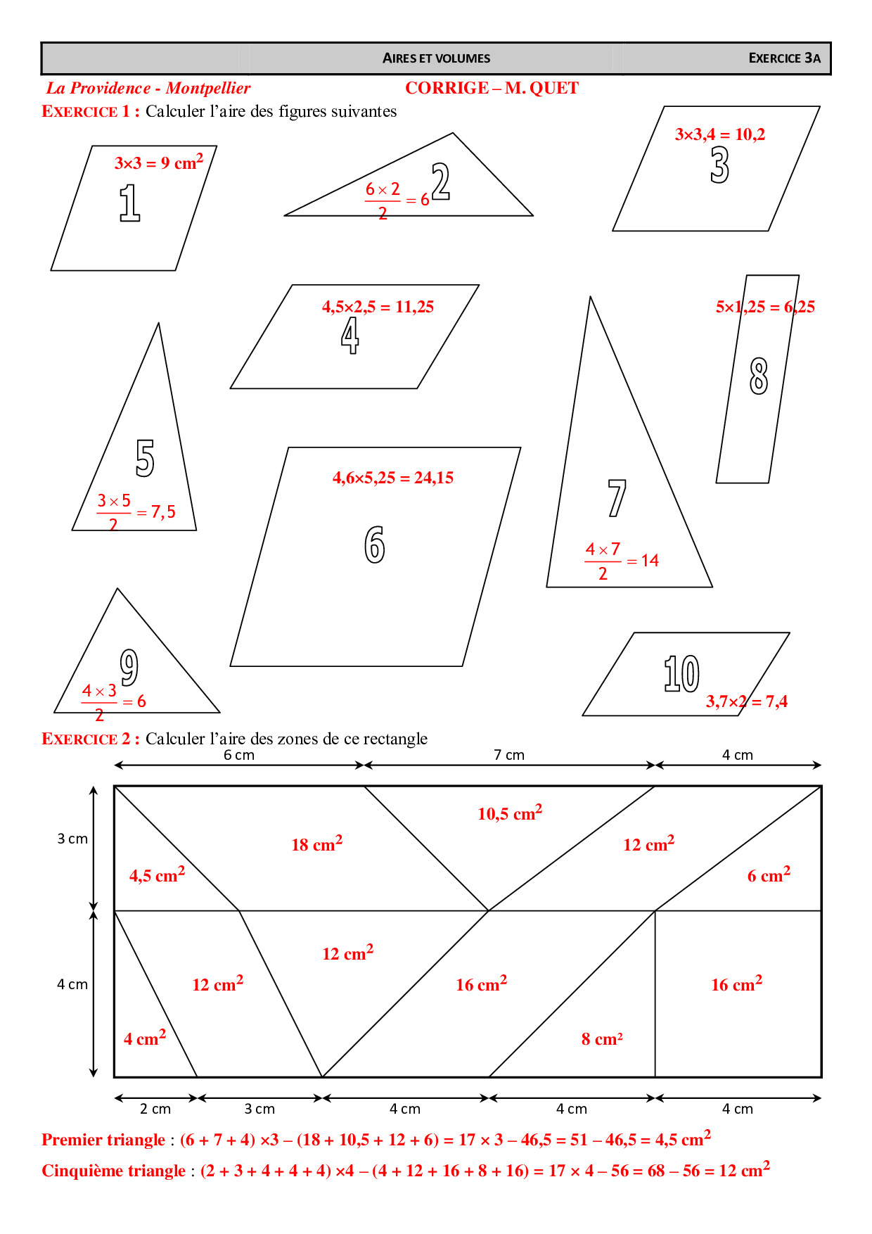 Aires en vrac - Corrigés d'exercices