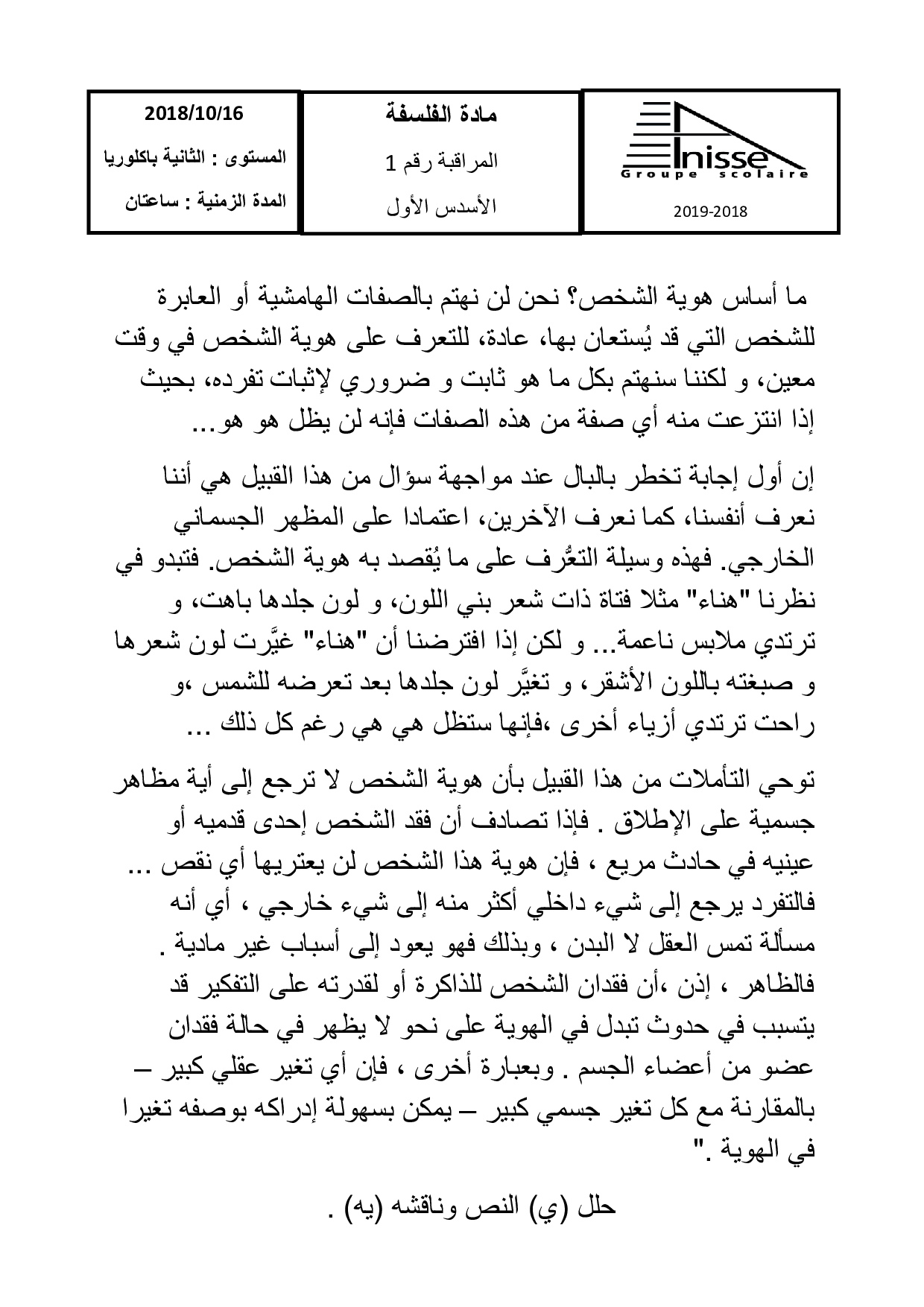 الفلسفة: الثانية باك علوم رياضية ب