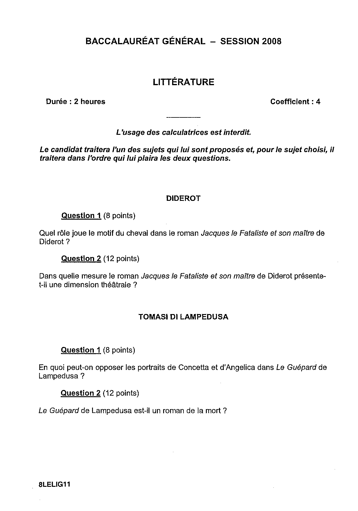 Bac L Littérature Centres Etrangers Afrique 2008 - Sujet