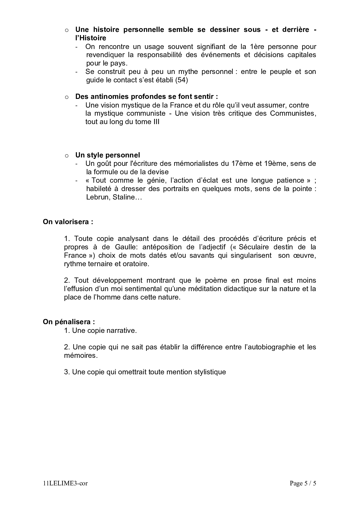 Bac L Littérature Métropole 2011 (Session de remplacement) - Corrigé