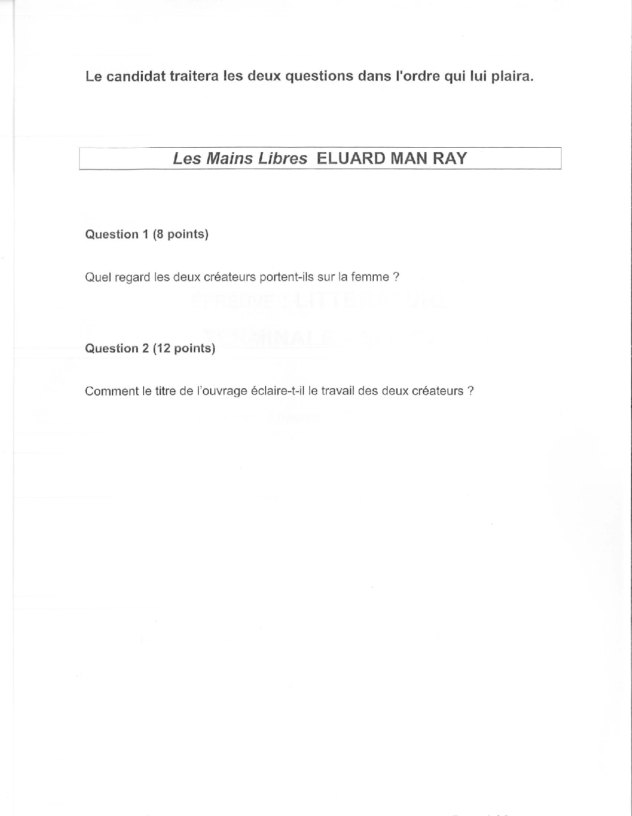 Bac L Littérature Amérique du Nord 2014 - Sujet