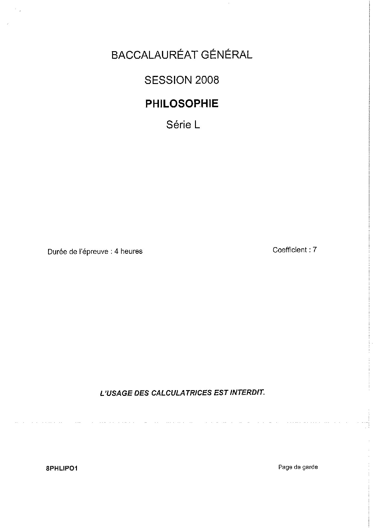 Bac L Philosophie Polynésie 2008 - Sujet