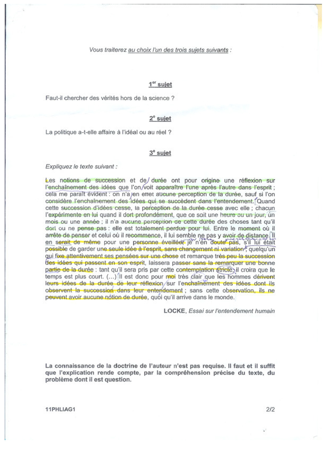 Bac L Philosophie Antilles-Guyane 2011 - Sujet