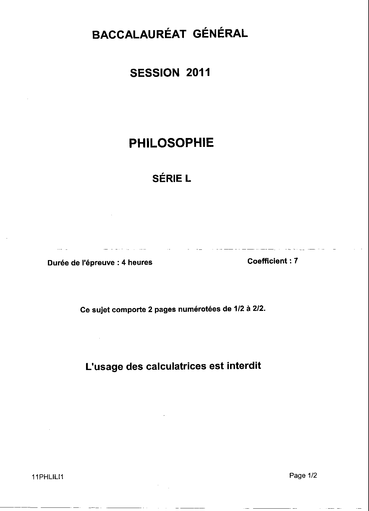 Bac L Philosophie Liban 2011 - Sujet