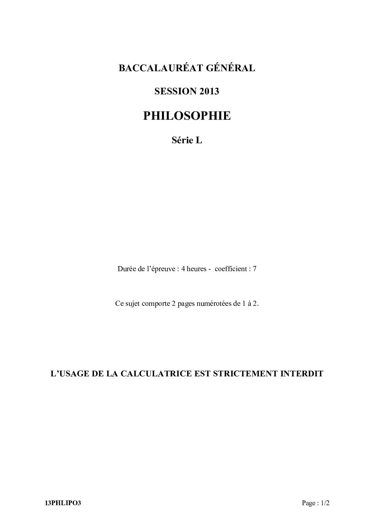 Bac L Philosophie Polynésie 2013 (Session de remplacement) - Sujet