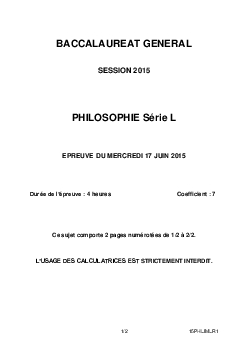 Bac L Philosophie Métropole 2015 - Sujet