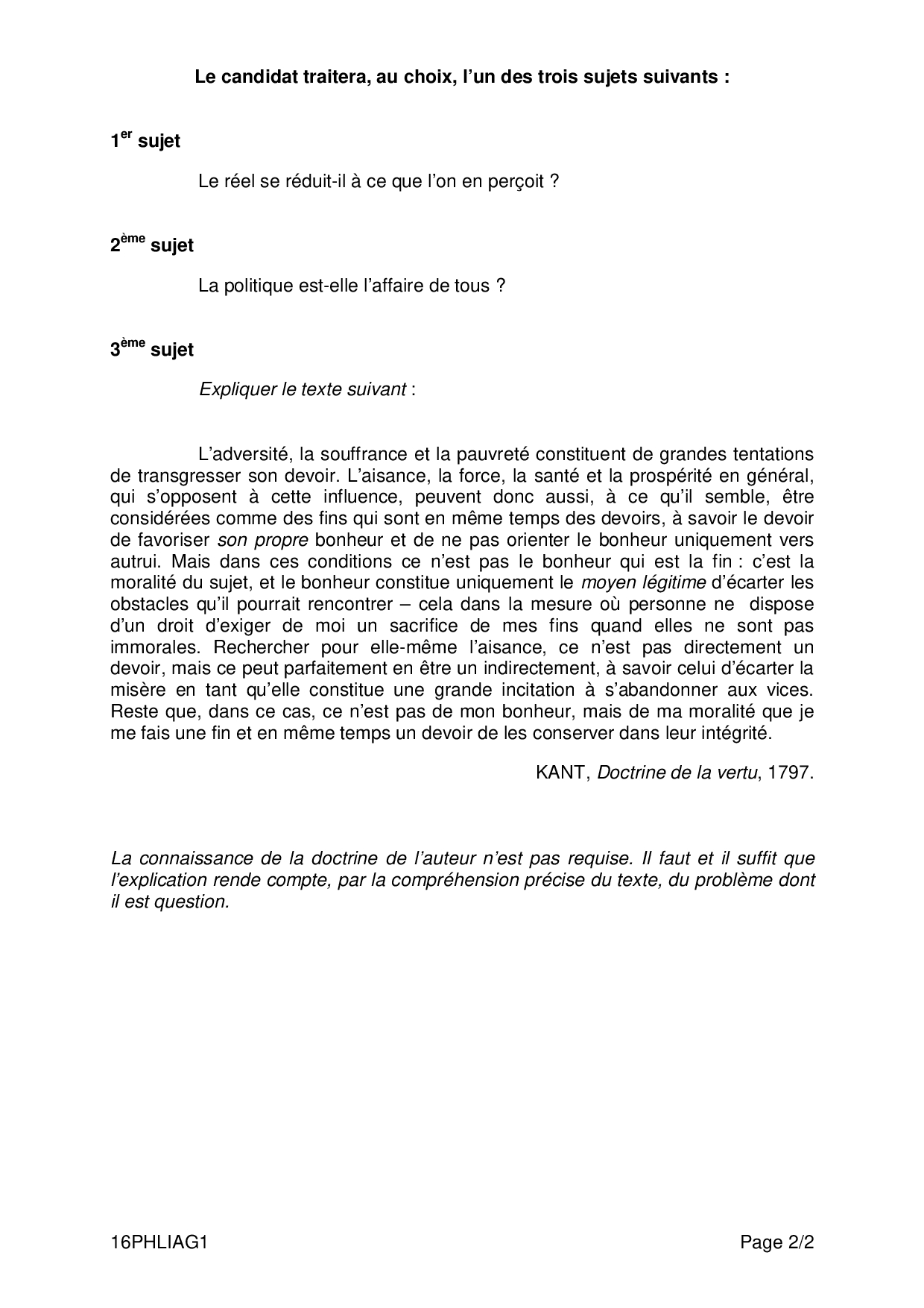 Bac L Philosophie Antilles-Guyane 2016 - Sujet
