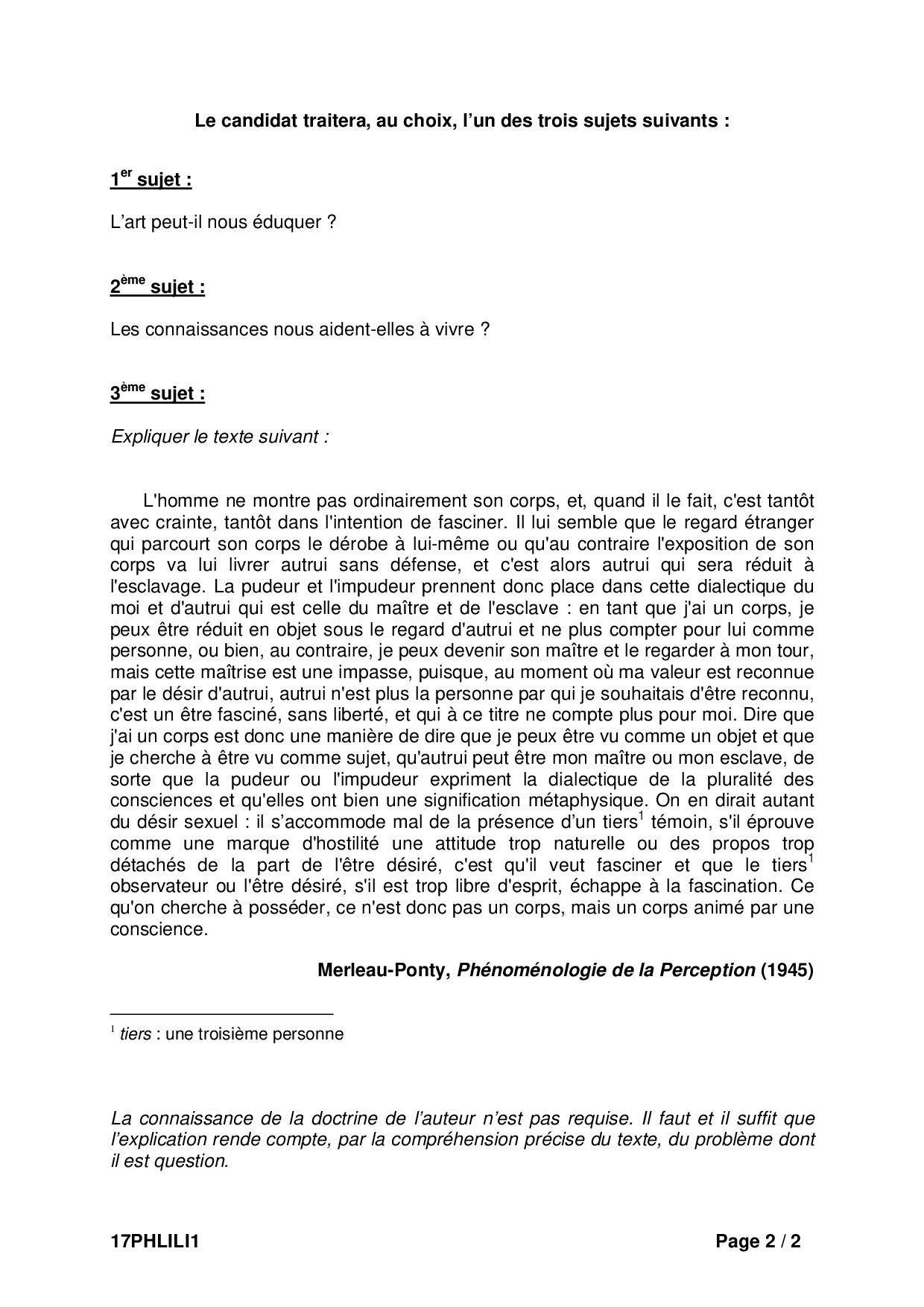 Bac L Philosophie Liban 2017 - Sujet