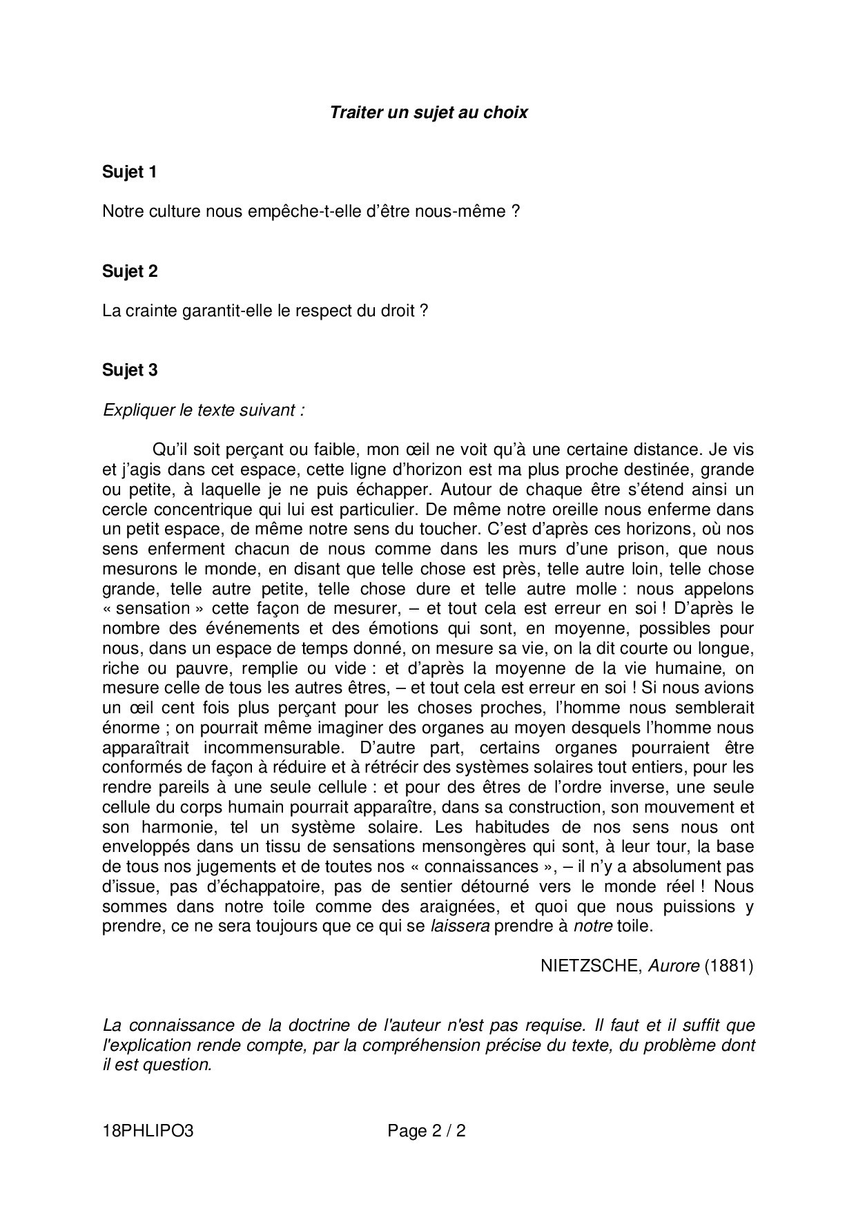 Bac L Philosophie Polynésie 2018 (Session de remplacement) - Sujet
