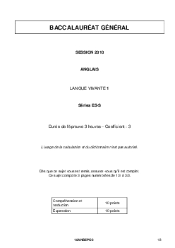 Bac S-ES Anglais LV1 Polynésie 2010 (Session de remplacement) - Sujet