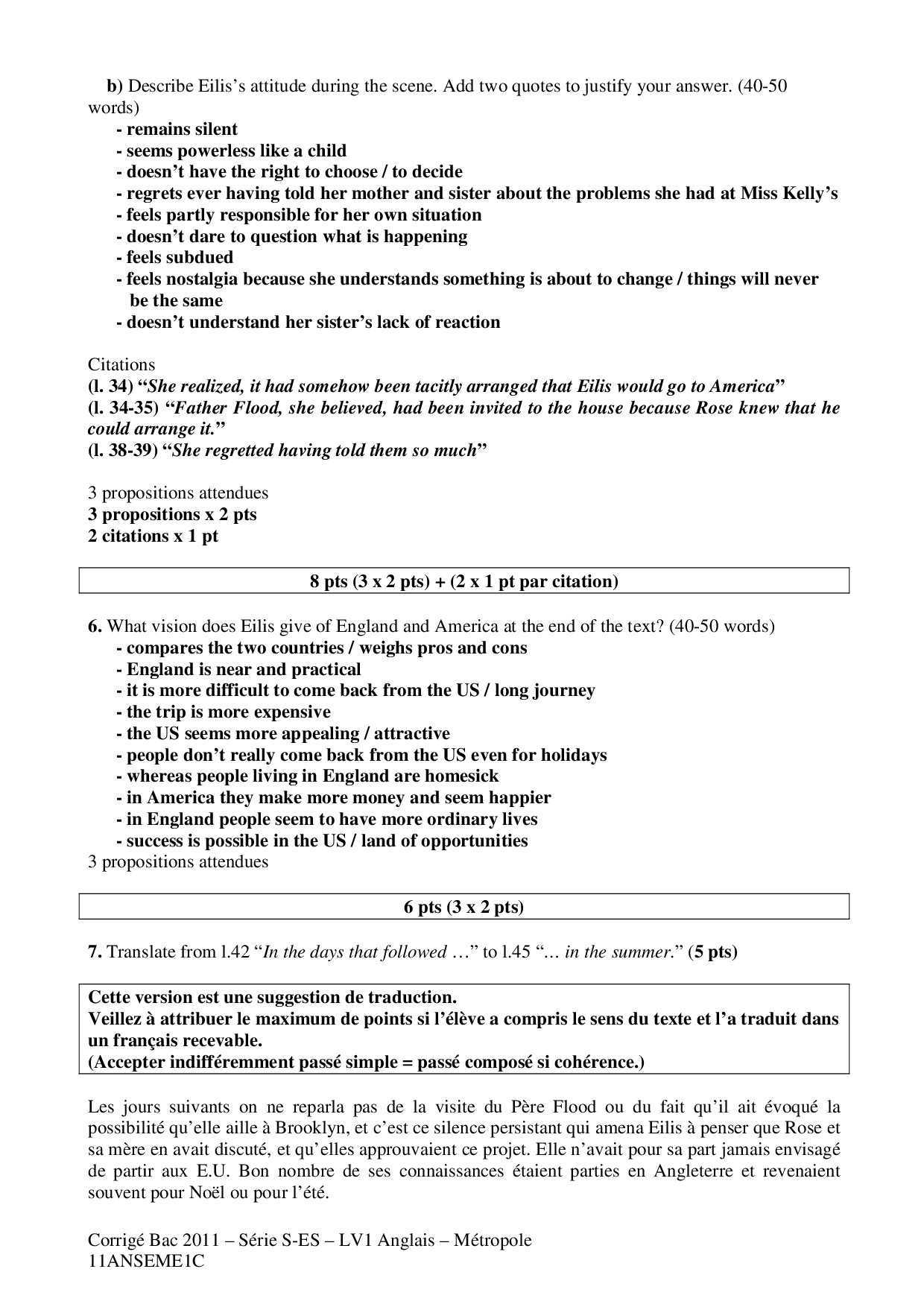 Bac S-ES Anglais LV1 Métropole 2011 - Corrigé