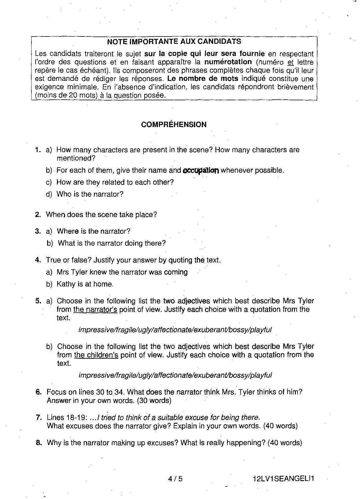 Bac S-ES Anglais LV1 Liban 2012 - Sujet