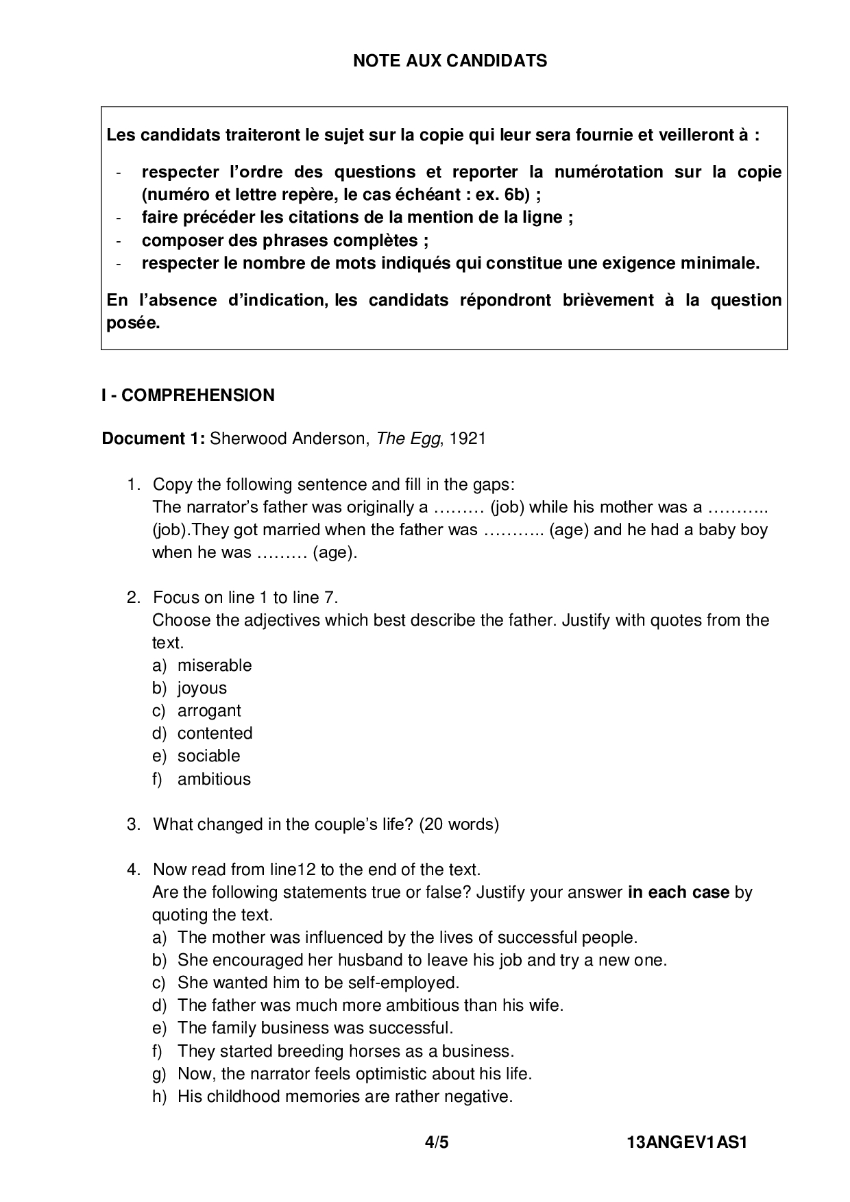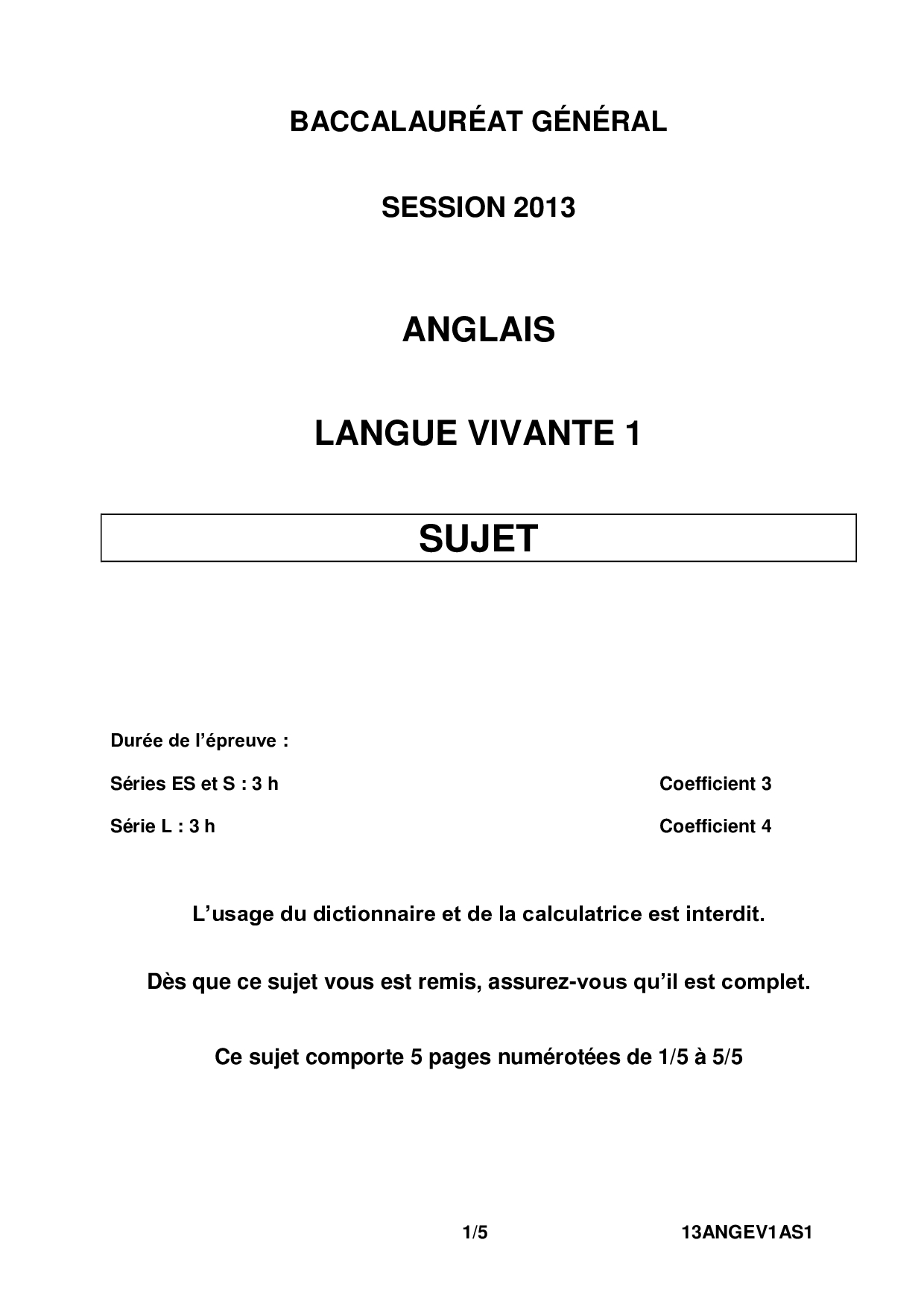 Bac S-ES-L Anglais LV1 Amérique du Sud 2013 - Sujet